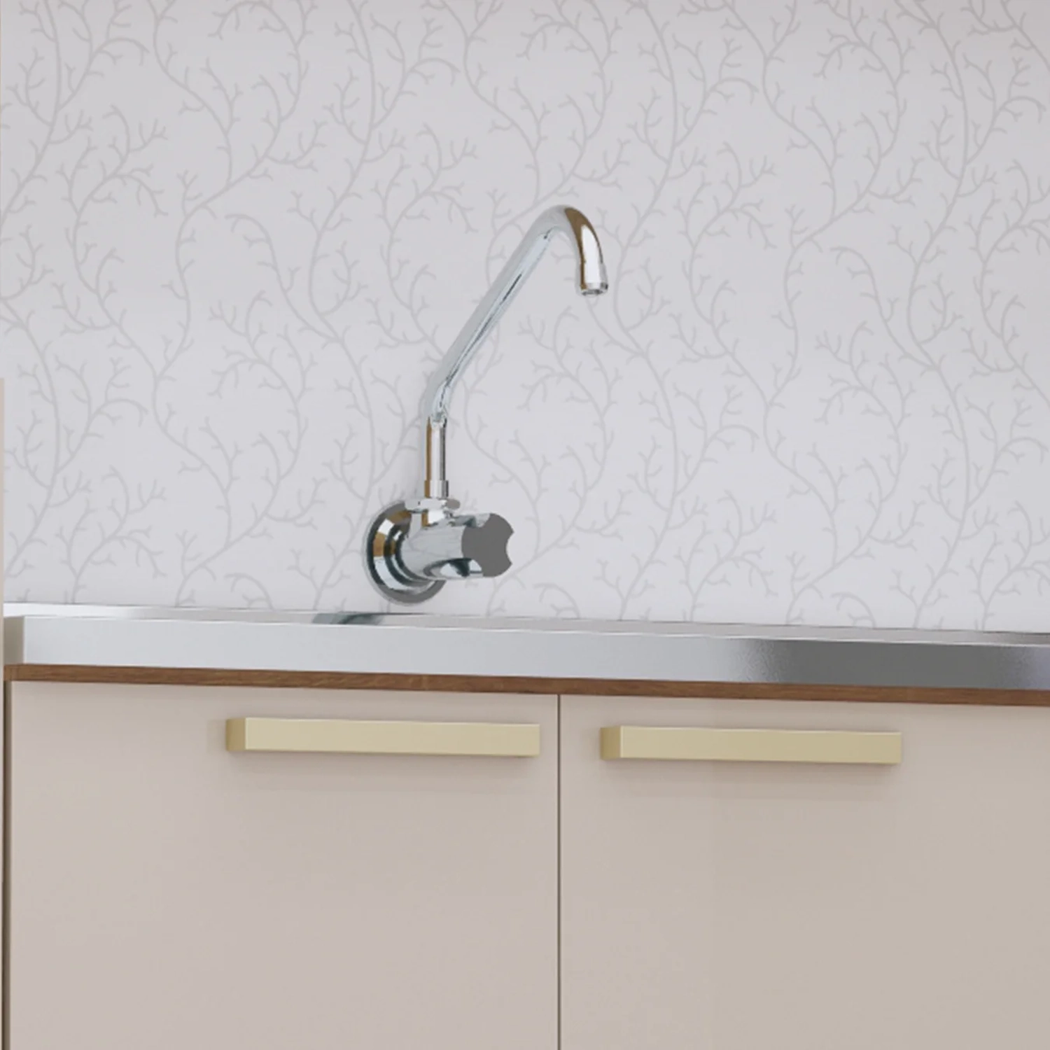 Tanto o balcão quanto o paneleiro têm pés com regulagem de altura, garantindo estabilidade em diferentes pisos. Os puxadores em poliestireno adicionam durabilidade e um toque sofisticado aos móveis.