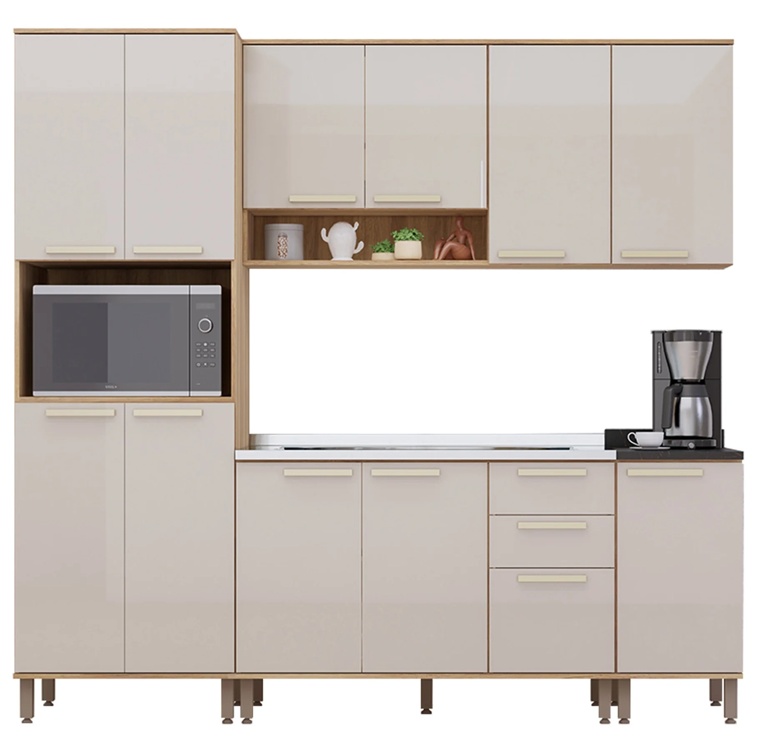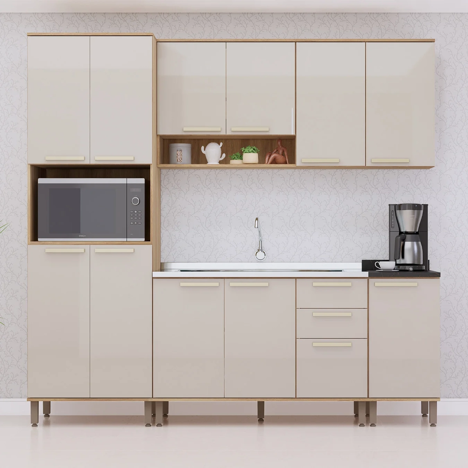 O Armário de Cozinha é perfeito para organizar o ambiente e facilitar as tarefas diárias. Produzido em MDP, oferece durabilidade para o uso constante. O Paneleiro Com Nicho para micro-ondas aproveita o espaço de forma inteligente, com portas com amortecimento e prateleiras internas que auxiliam na organização dos itens essenciais.