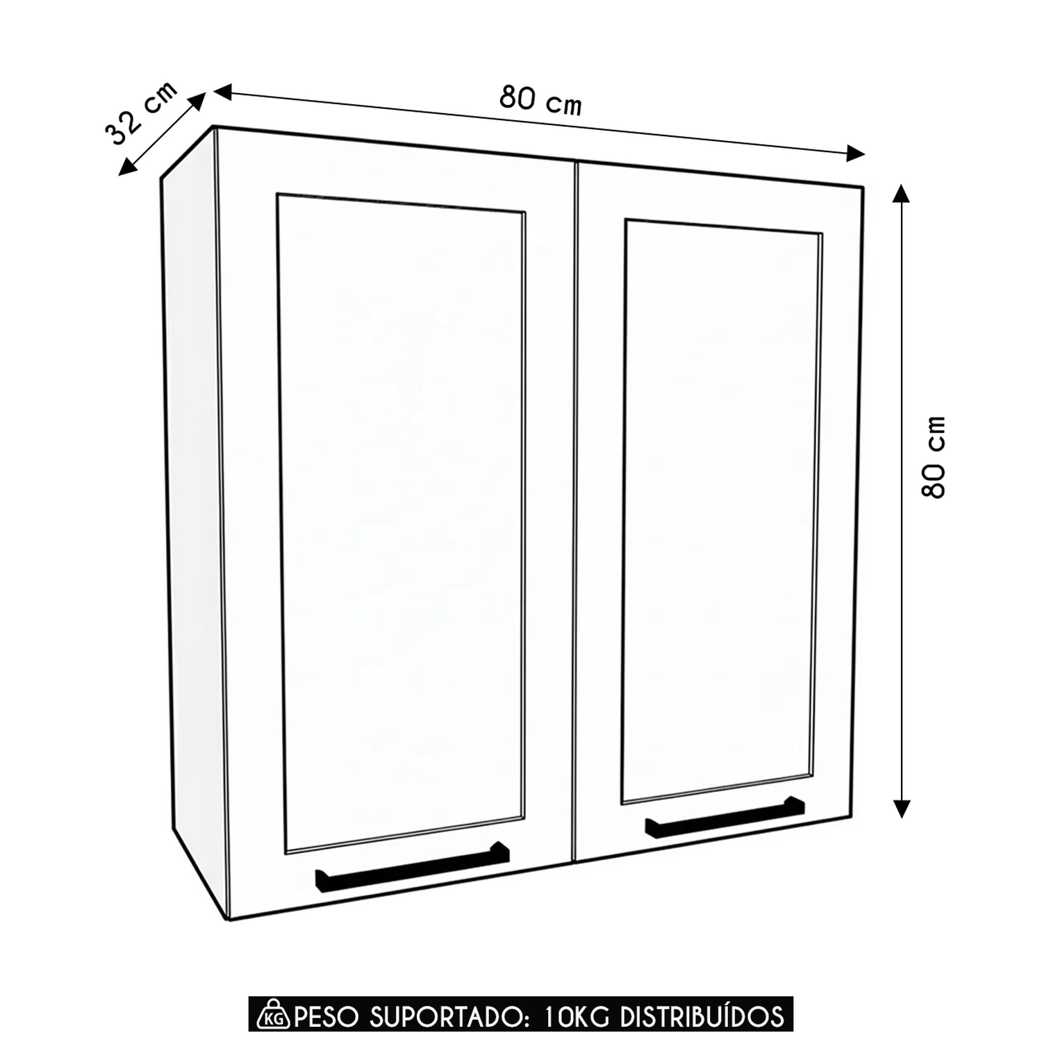 Este Armário de Cozinha Aéreo é fabricado 100% em MDF, oferecendo resistência e durabilidade para a sua cozinha. Sua estrutura robusta é ideal para otimizar o armazenamento de utensílios e alimentos.