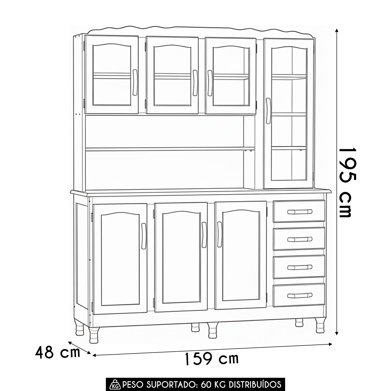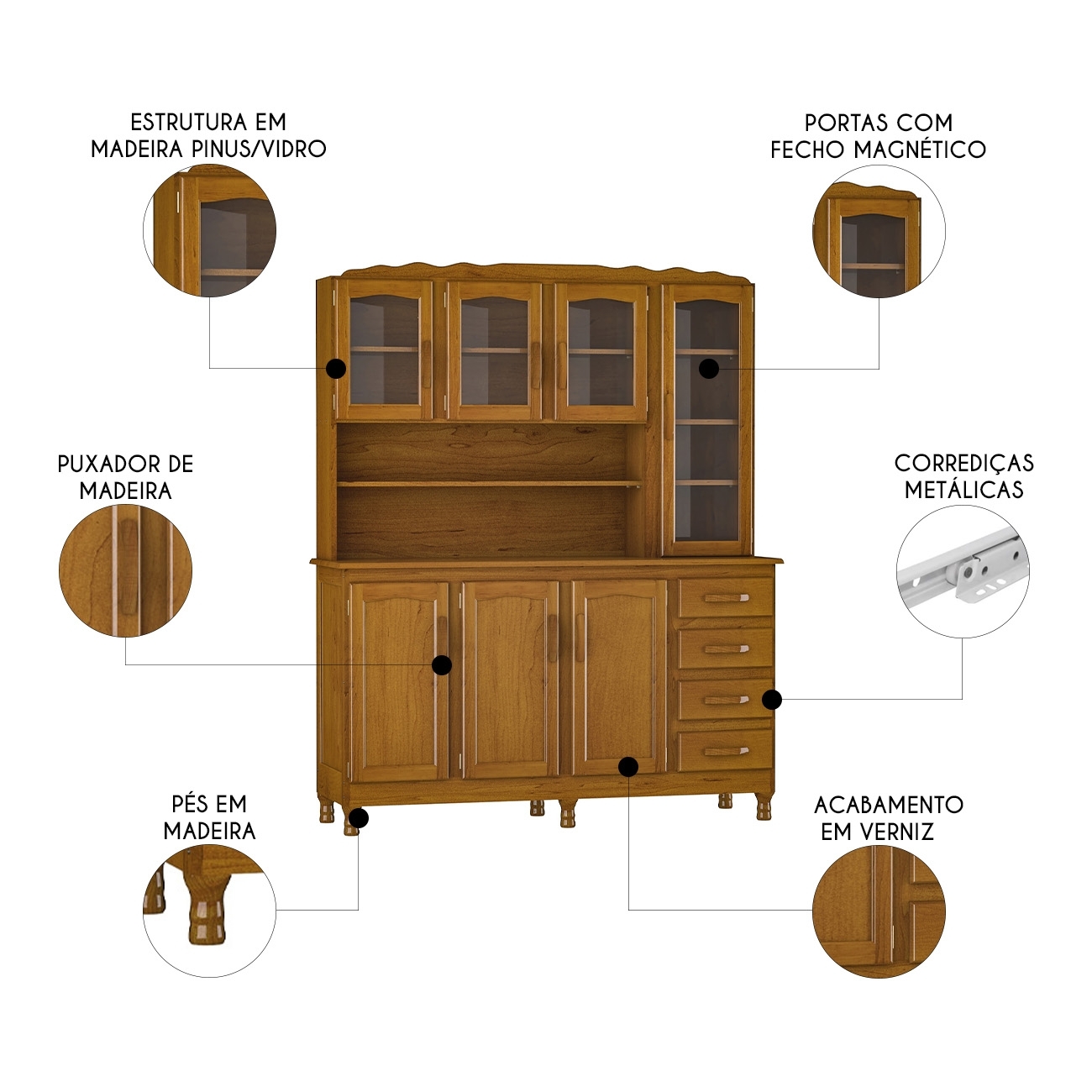 Armário Cozinha Compacta 159cm Madeira 7 Portas Daisy Imbuia Z25 - Mpozenato