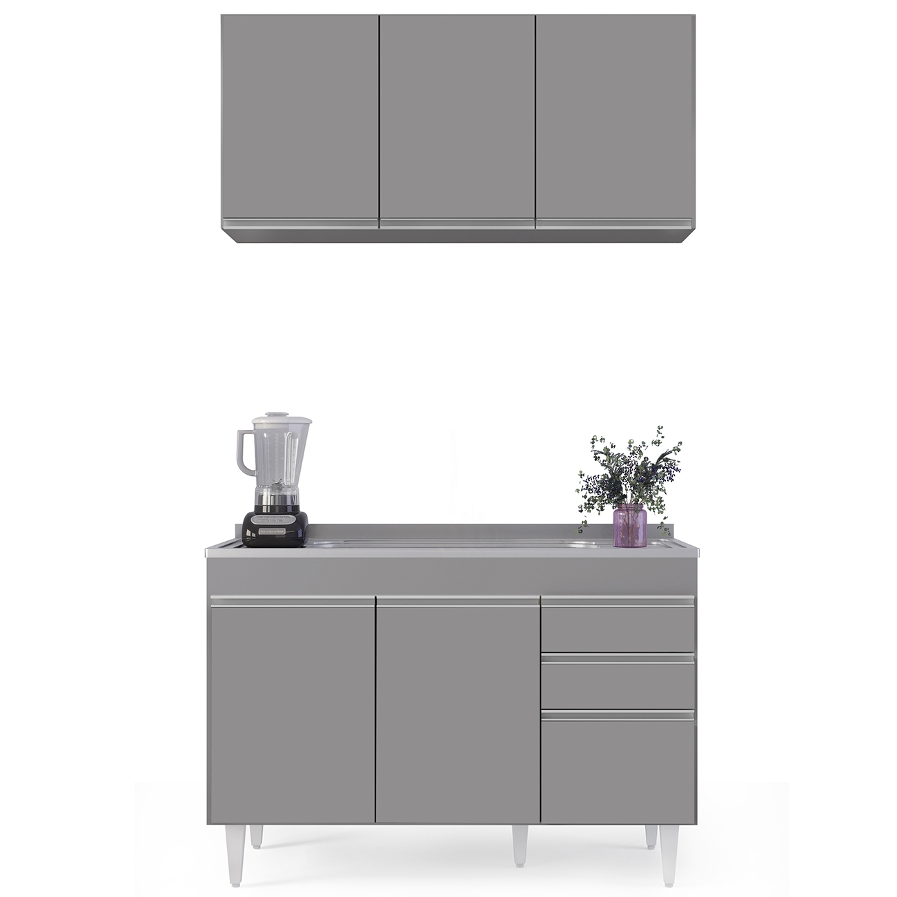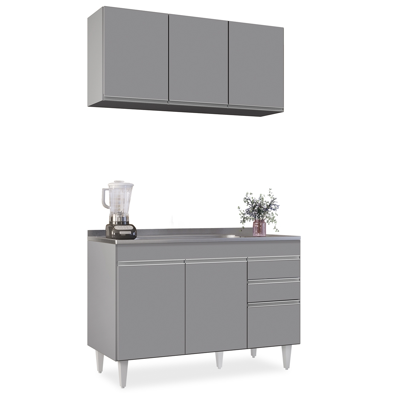 Armário Cozinha e Balcão Com Pia 120cm Michigan Cinza - Lumil