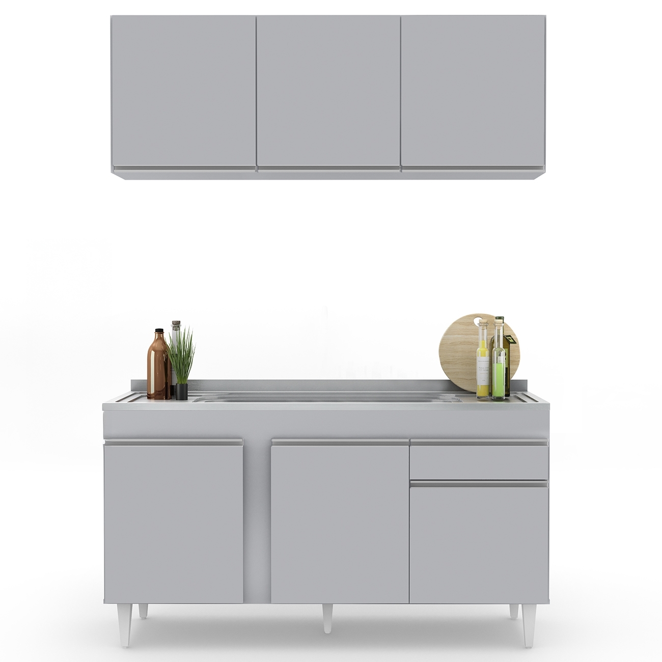 Armário Cozinha e Balcão Com Pia 150cm Dakota Cinza Claro - Lumil