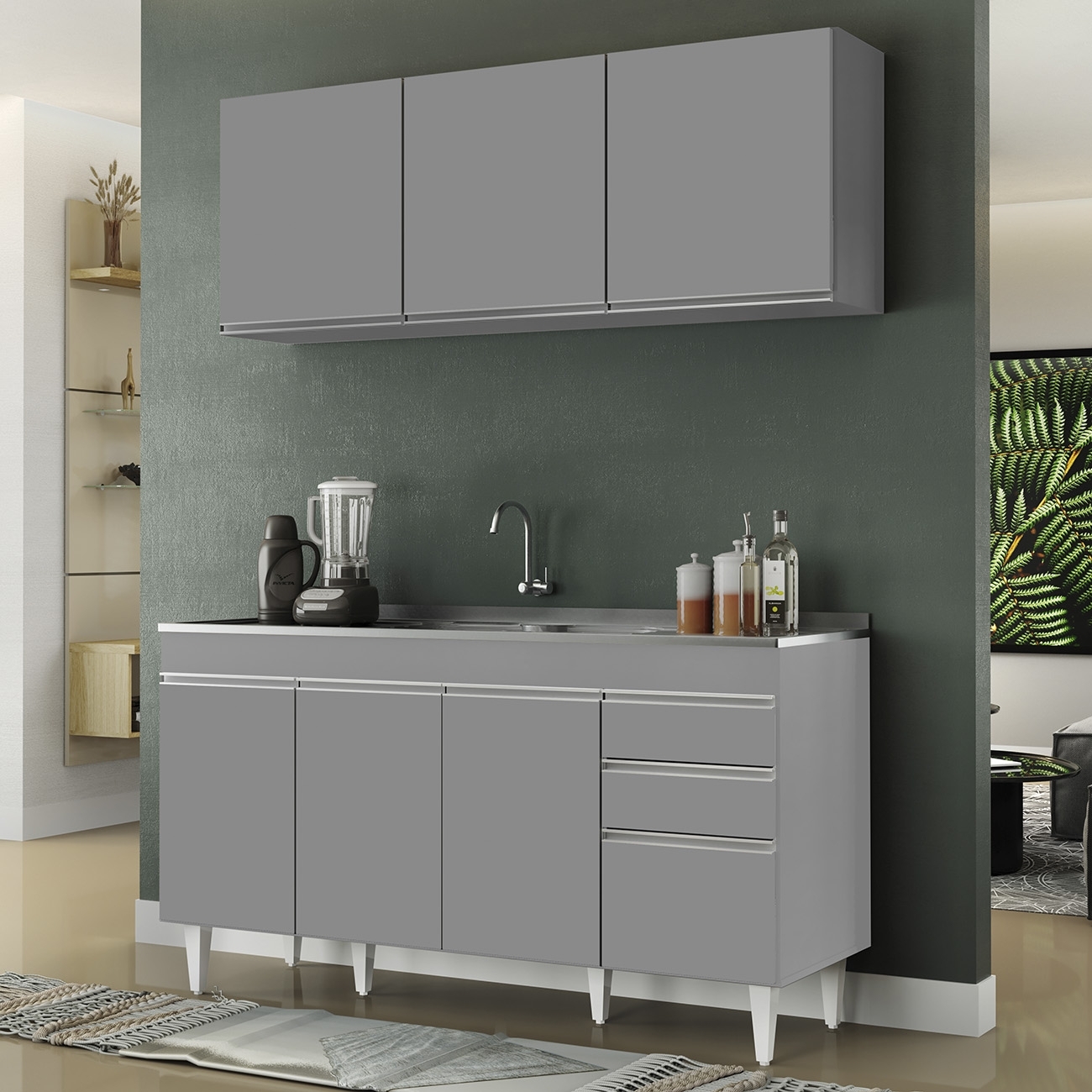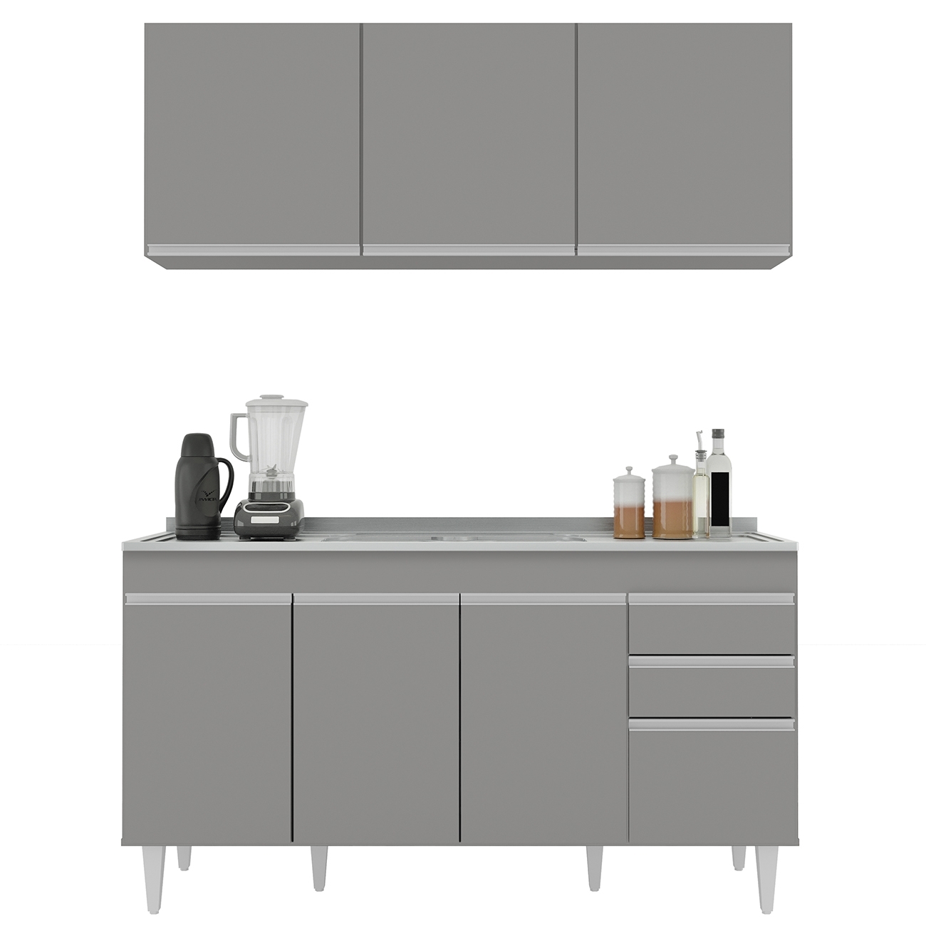 Armário Cozinha e Balcão Com Pia 150cm Marrocos Cinza - Lumil