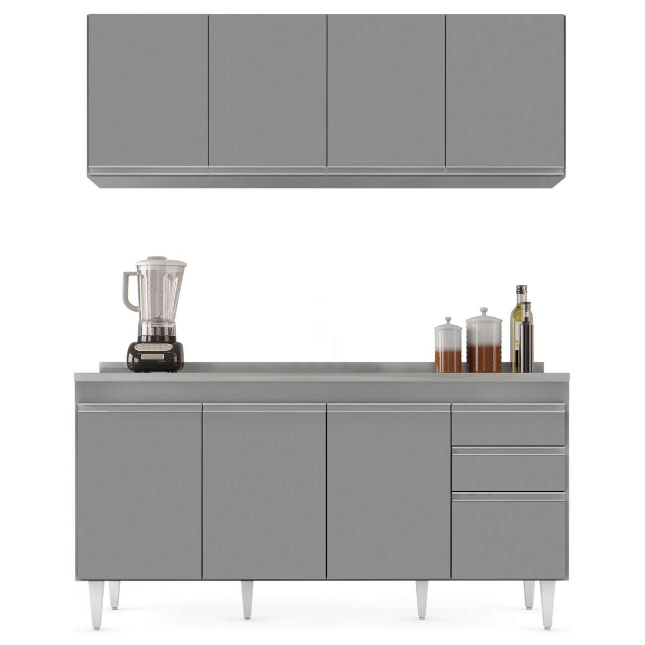 Armário Cozinha e Balcão Com Pia 160cm Arkansas Cinza - Lumil