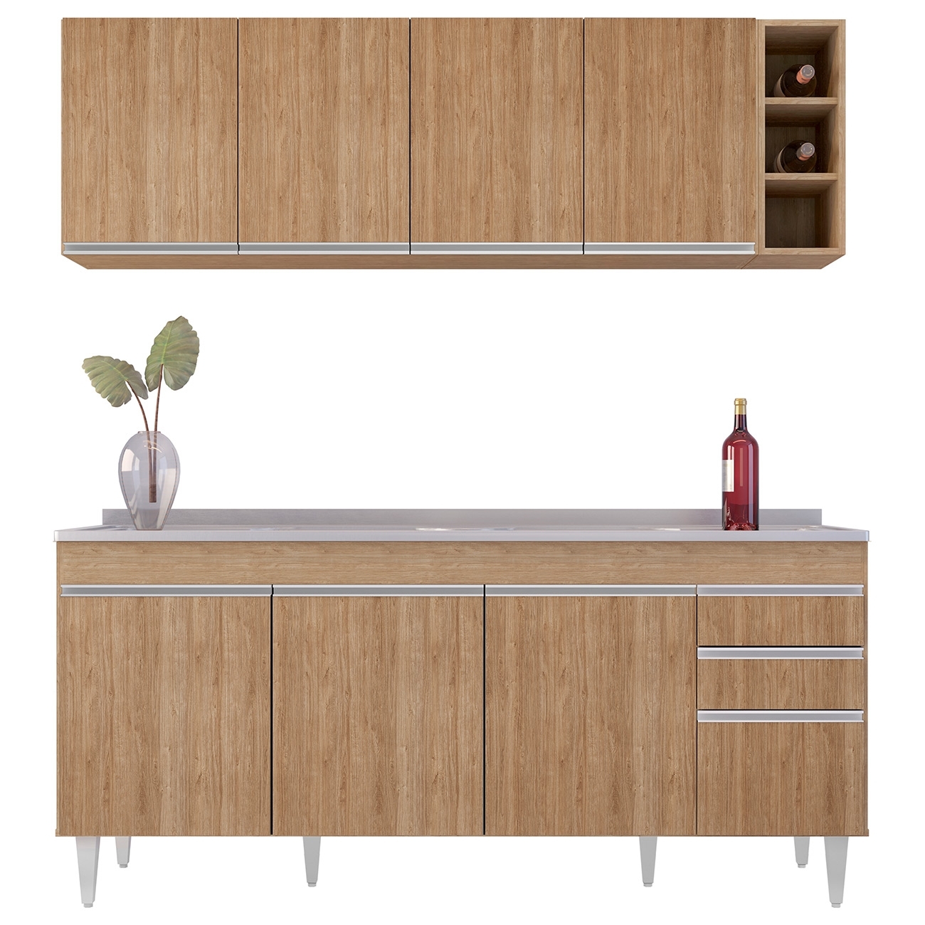 Armário Cozinha e Balcão Com Pia 180cm Dallas Castanho - Lumil