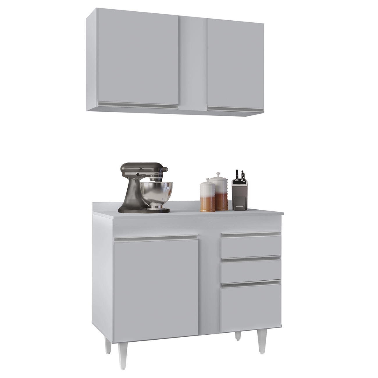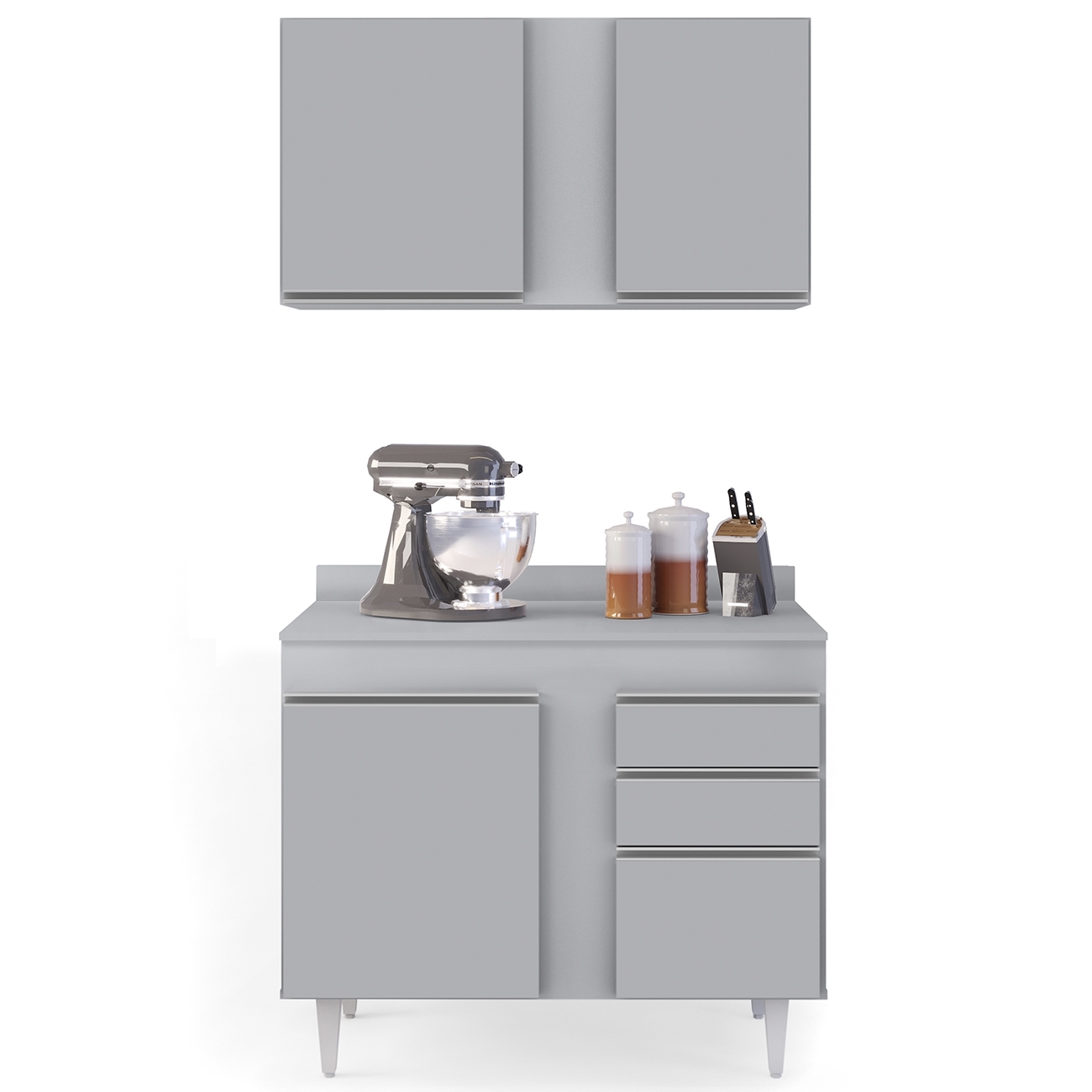Armário Cozinha e Balcão Com Tampo 100cm Luziania Cinza Claro - Lumil