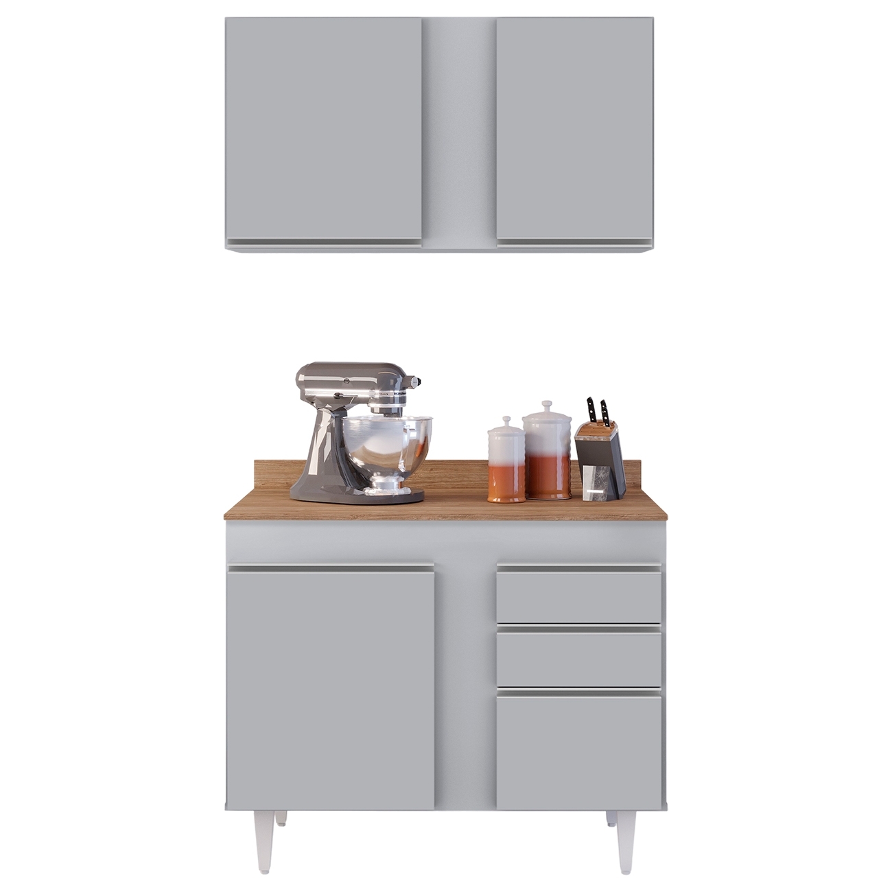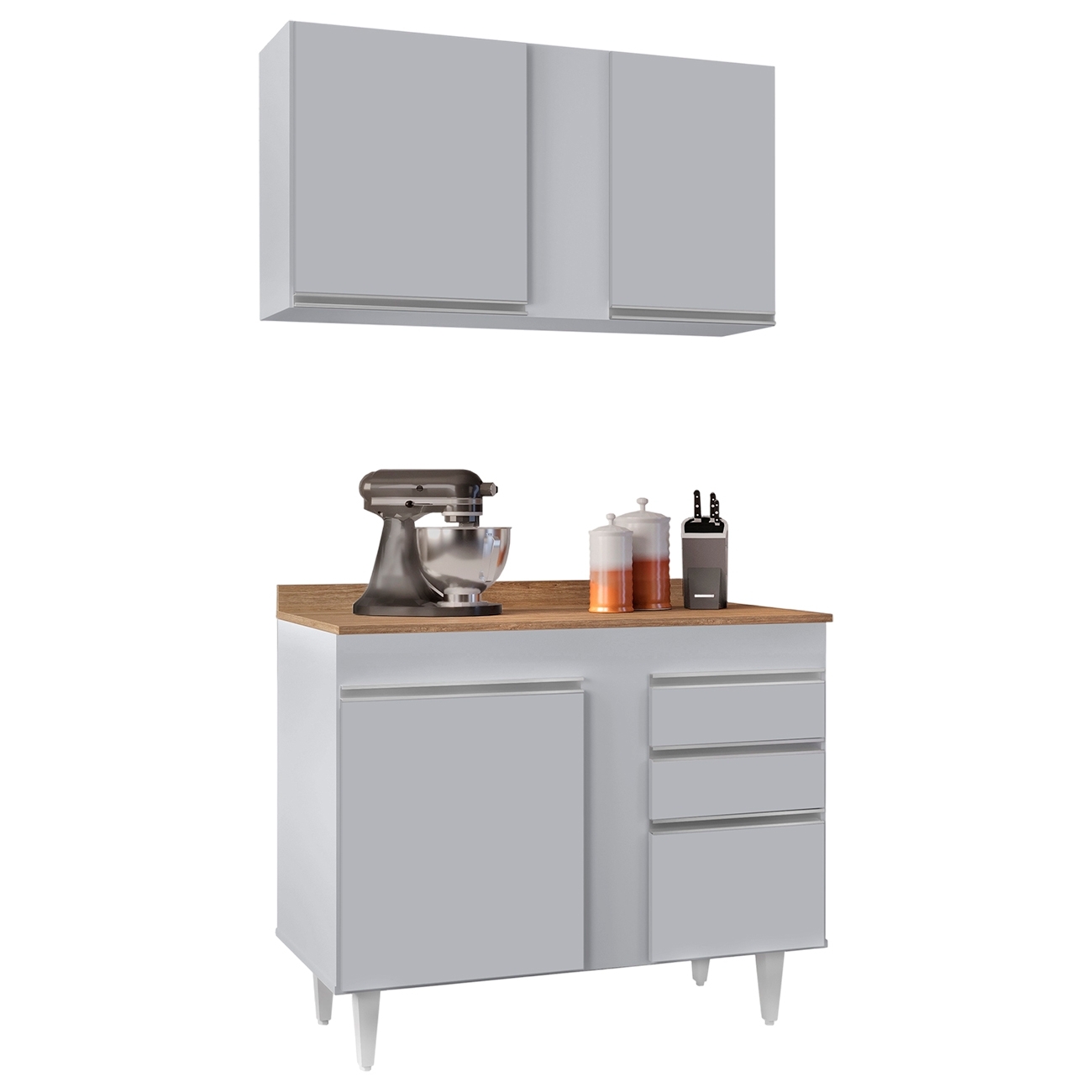 Armário Cozinha e Balcão Com Tampo 100cm Luziania Cinza Claro/Castanho - Lumil