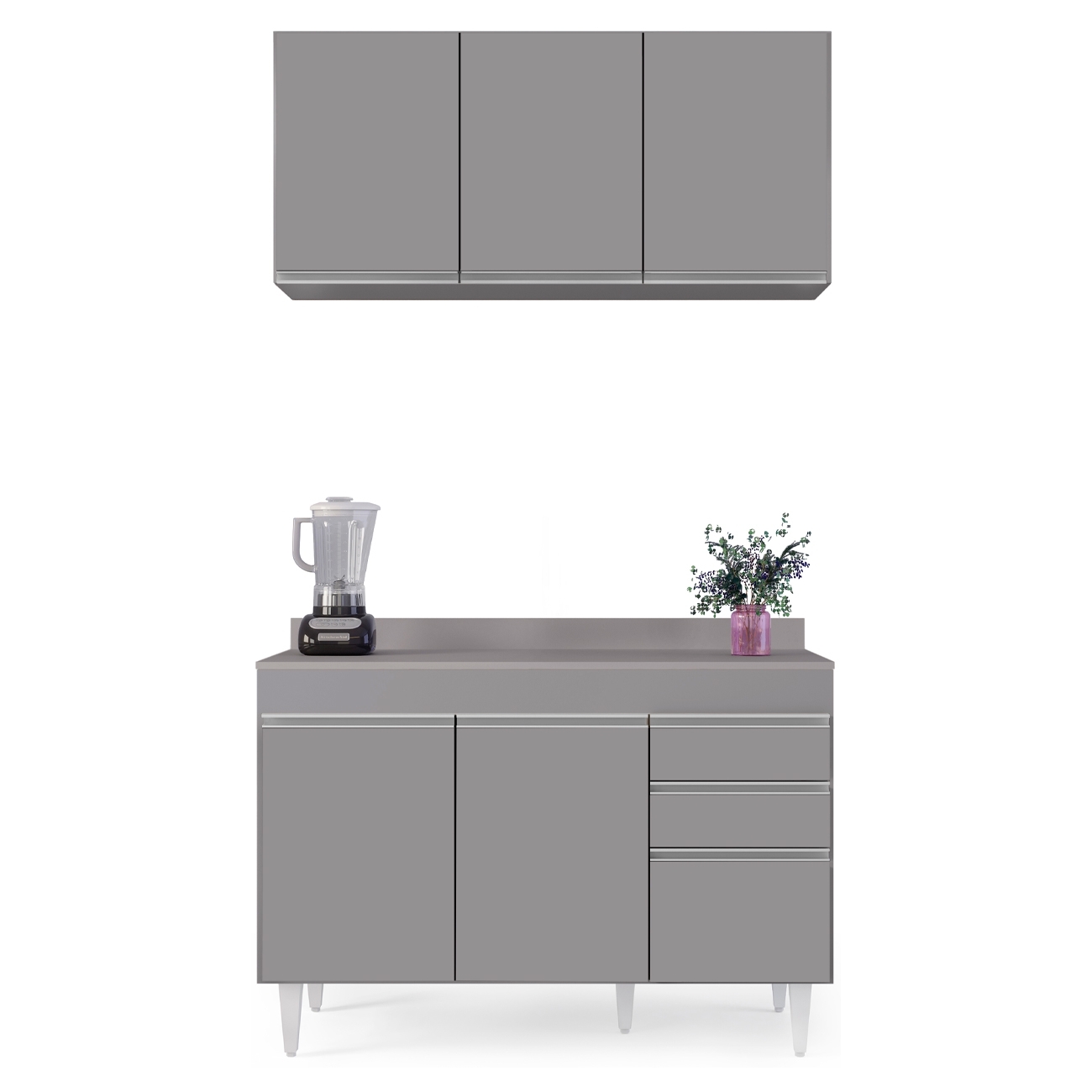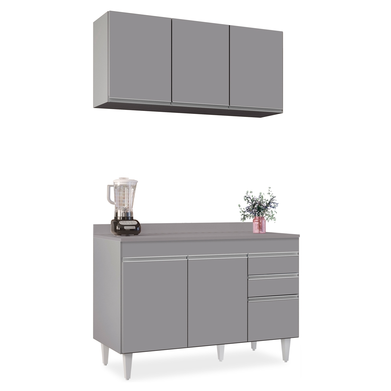 Armário Cozinha e Balcão Com Tampo 120cm Michigan Cinza - Lumil