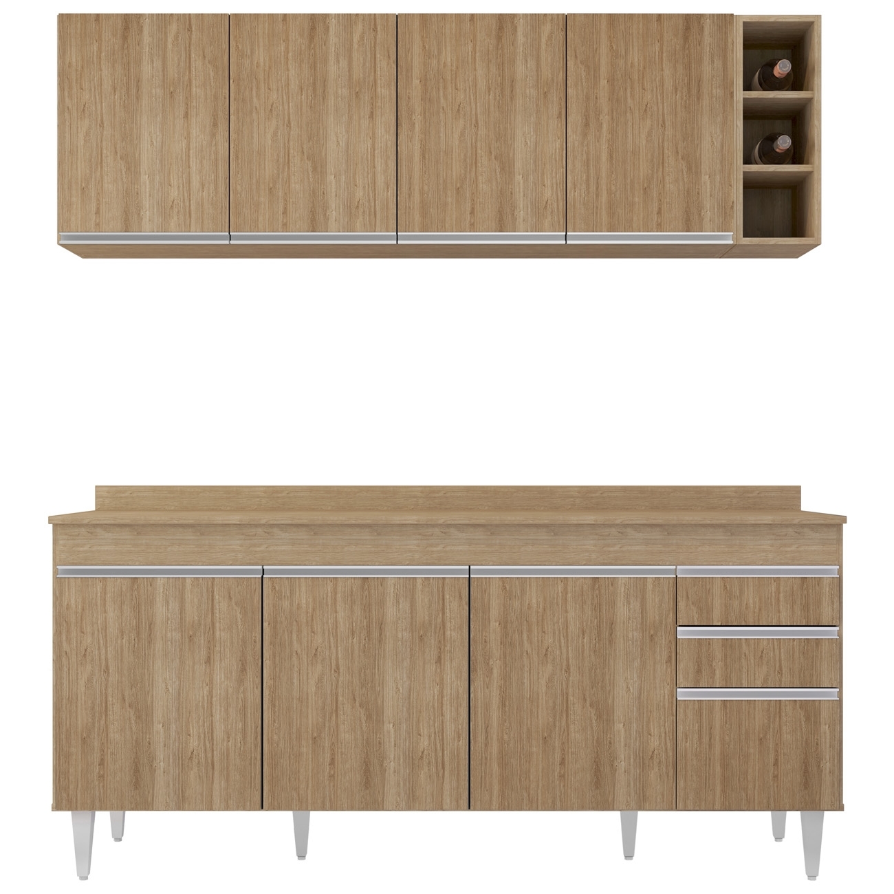 Armário Cozinha e Balcão Com Tampo 180cm Dallas Castanho - Lumil
