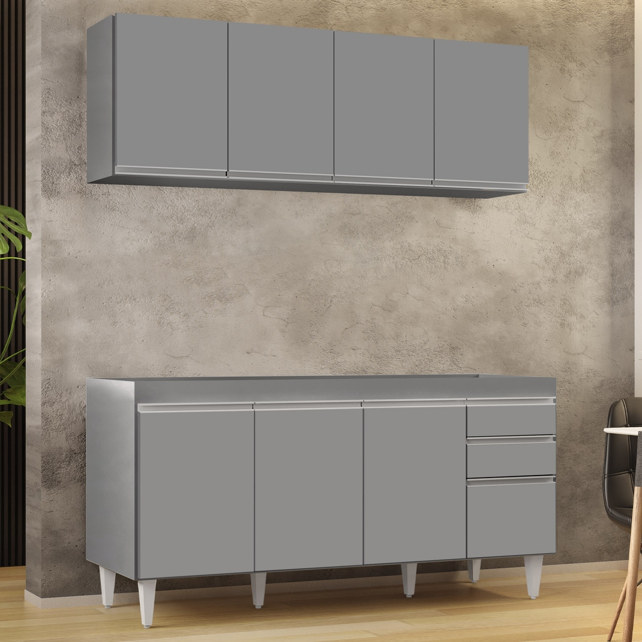 Perfeito para compor uma Cozinha Moderna, este conjunto combina praticidade e elegância, criando uma atmosfera funcional e acolhedora para o dia a dia.