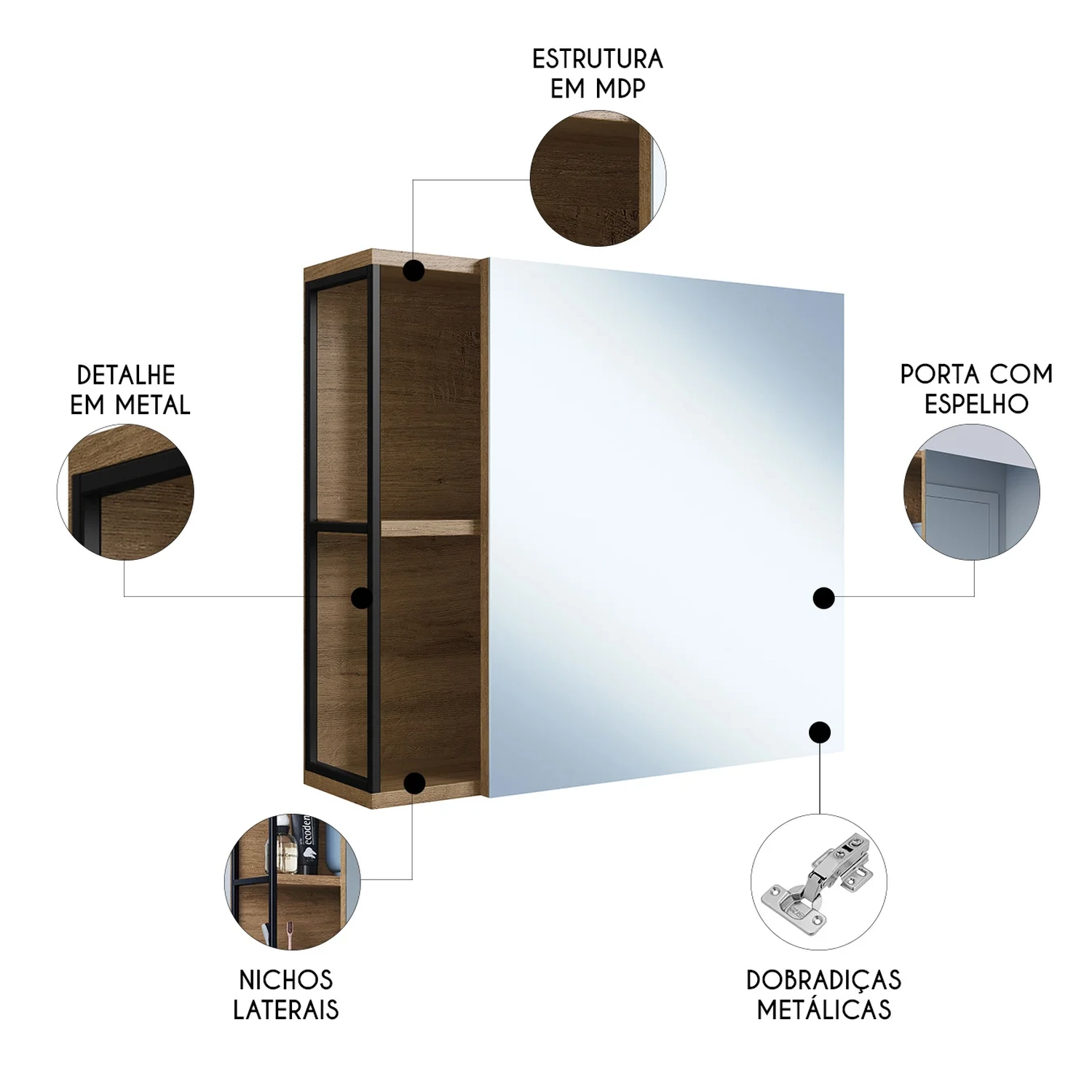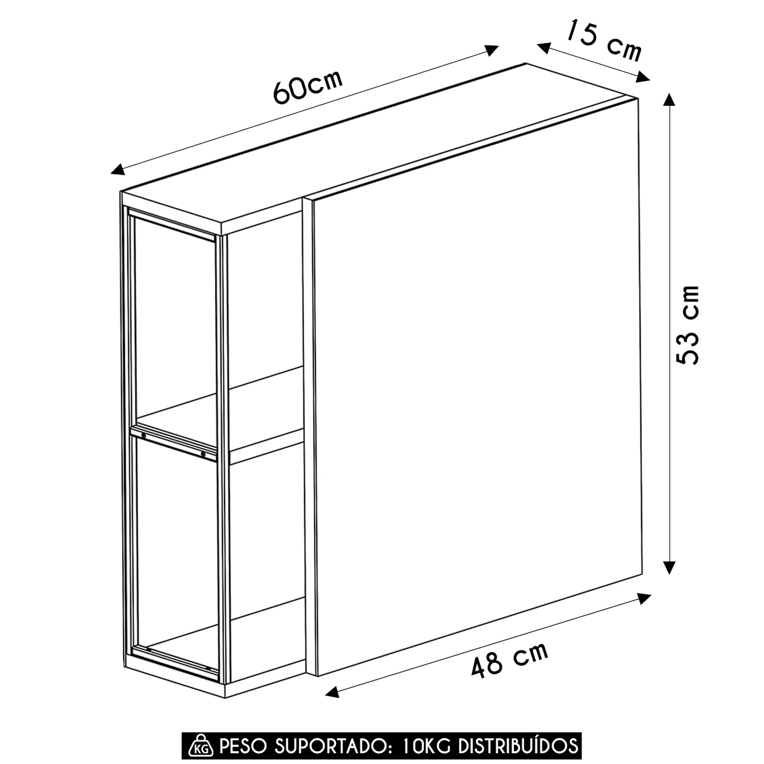 Com o espelho na porta, esta Espelheira também adiciona um toque de elegância ao ambiente, tornando ainda mais completo e sofisticado, sem deixar de ser prático e funcional para o dia a dia.