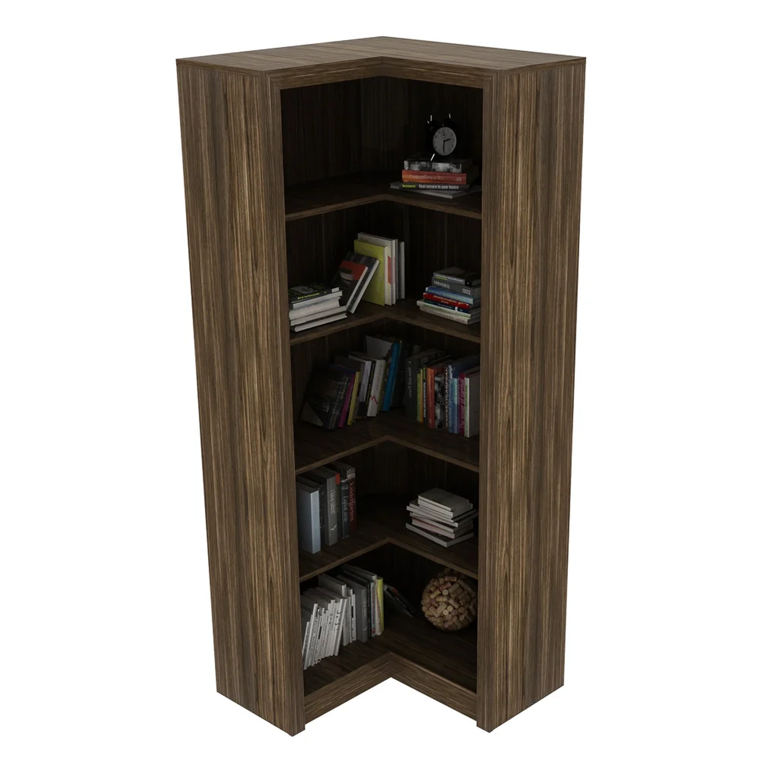 Armário em L 68cm Escritório 4 Prateleiras Nogal - Tecno Mobili