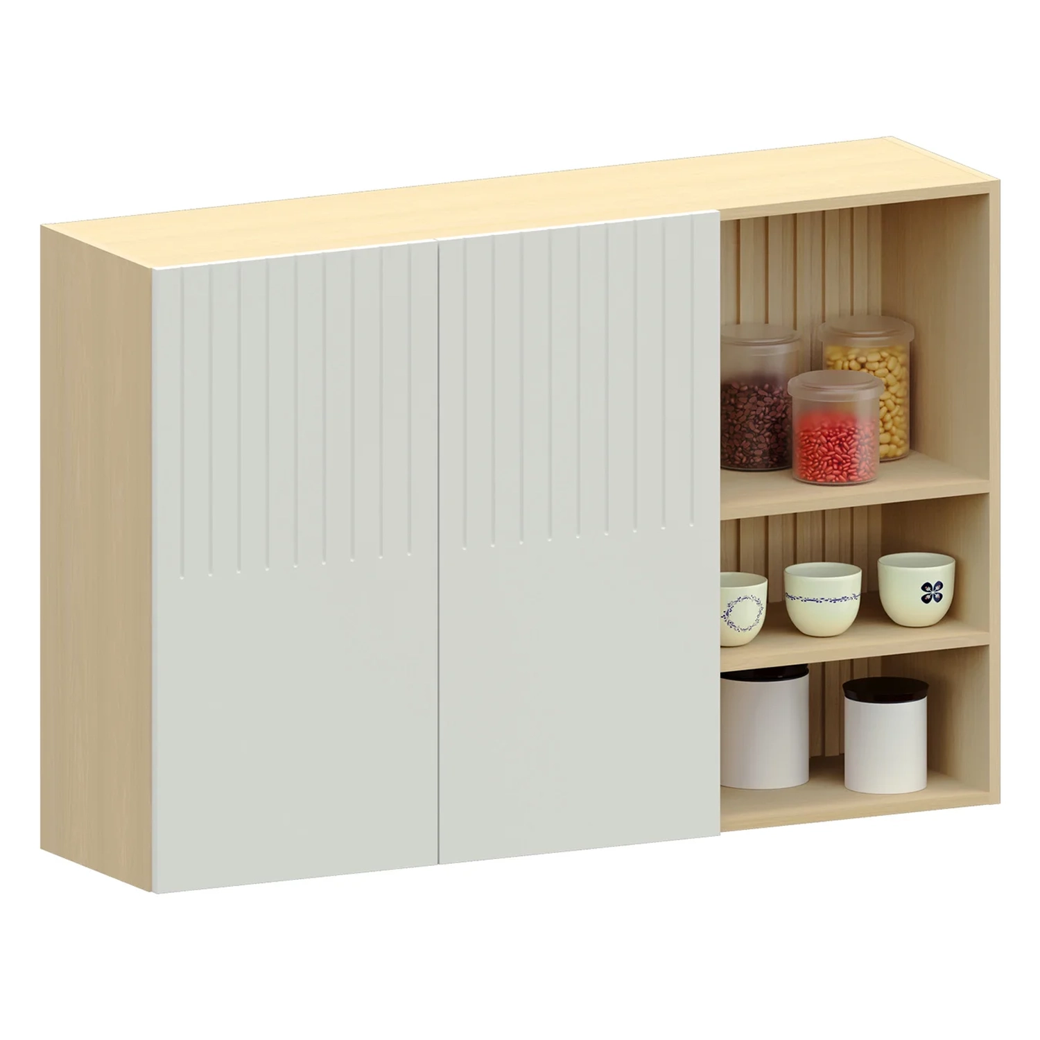 O Armário Aéreo oferece um amplo espaço com duas prateleiras internas para armazenamento de utensílios de forma prática, além de contar com três nichos com fundo ripado deixando a Cozinha elegante.