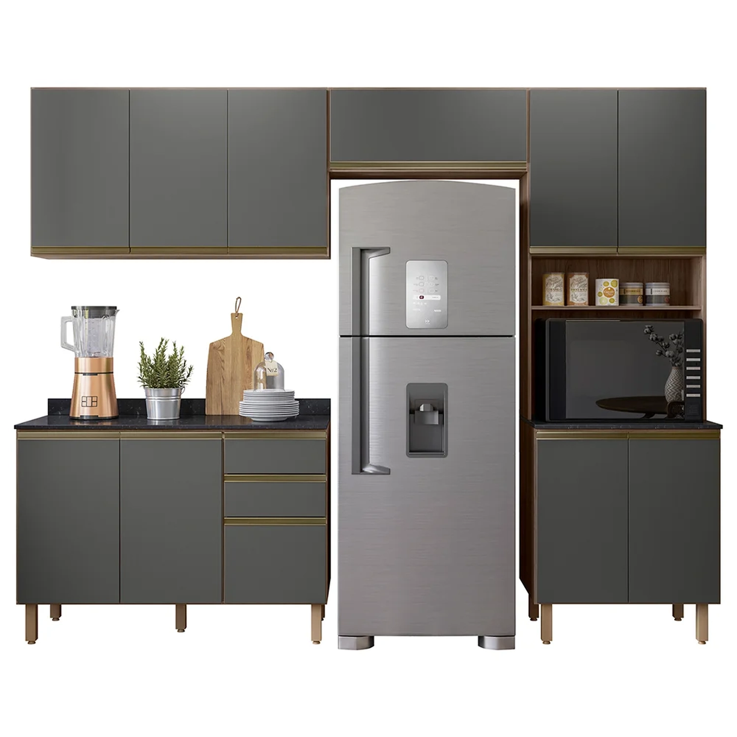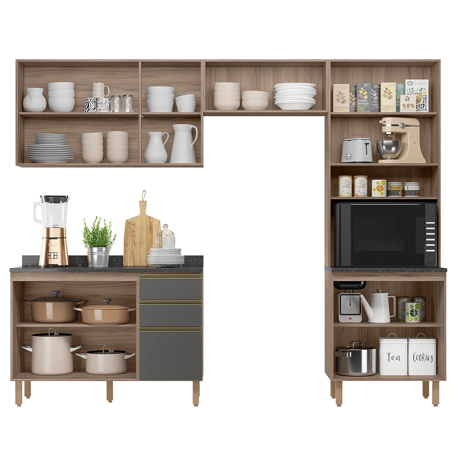 O Armário de Cozinha 4 Peças Com Tampo Lita N03 Carvalho/Grafite, da Mpozenato, é a combinação perfeita de funcionalidade e estilo.