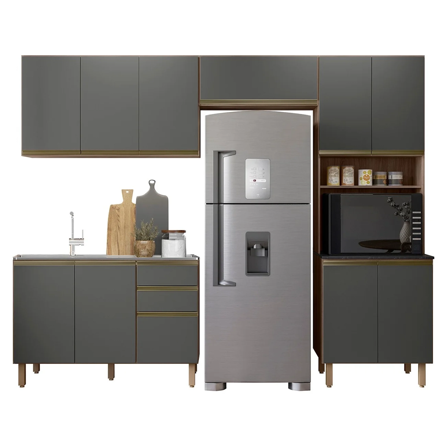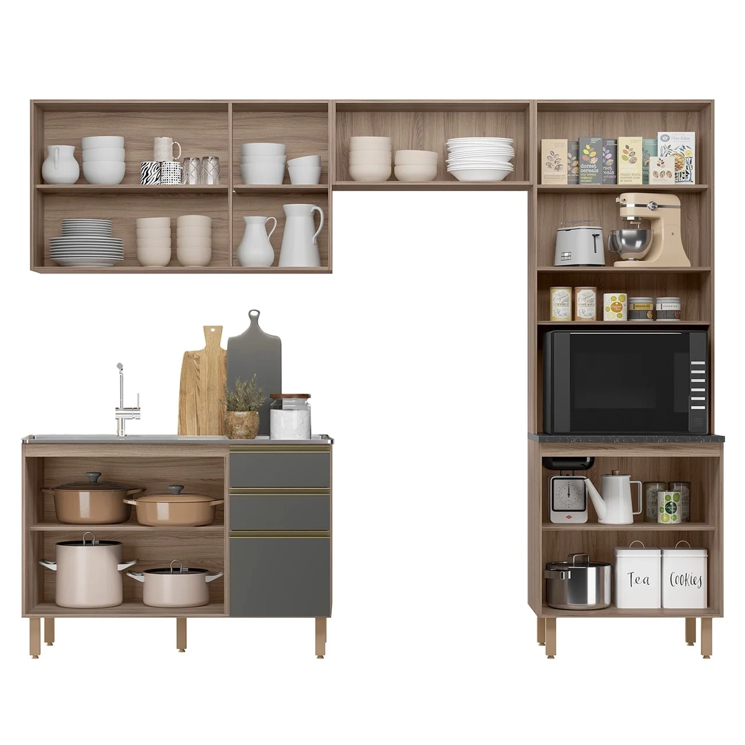O Armário de Cozinha 4 Peças Com Pia 120cm Lita N03 Carvalho/Grafite, da Mpozenato, é a combinação perfeita de funcionalidade e estilo.