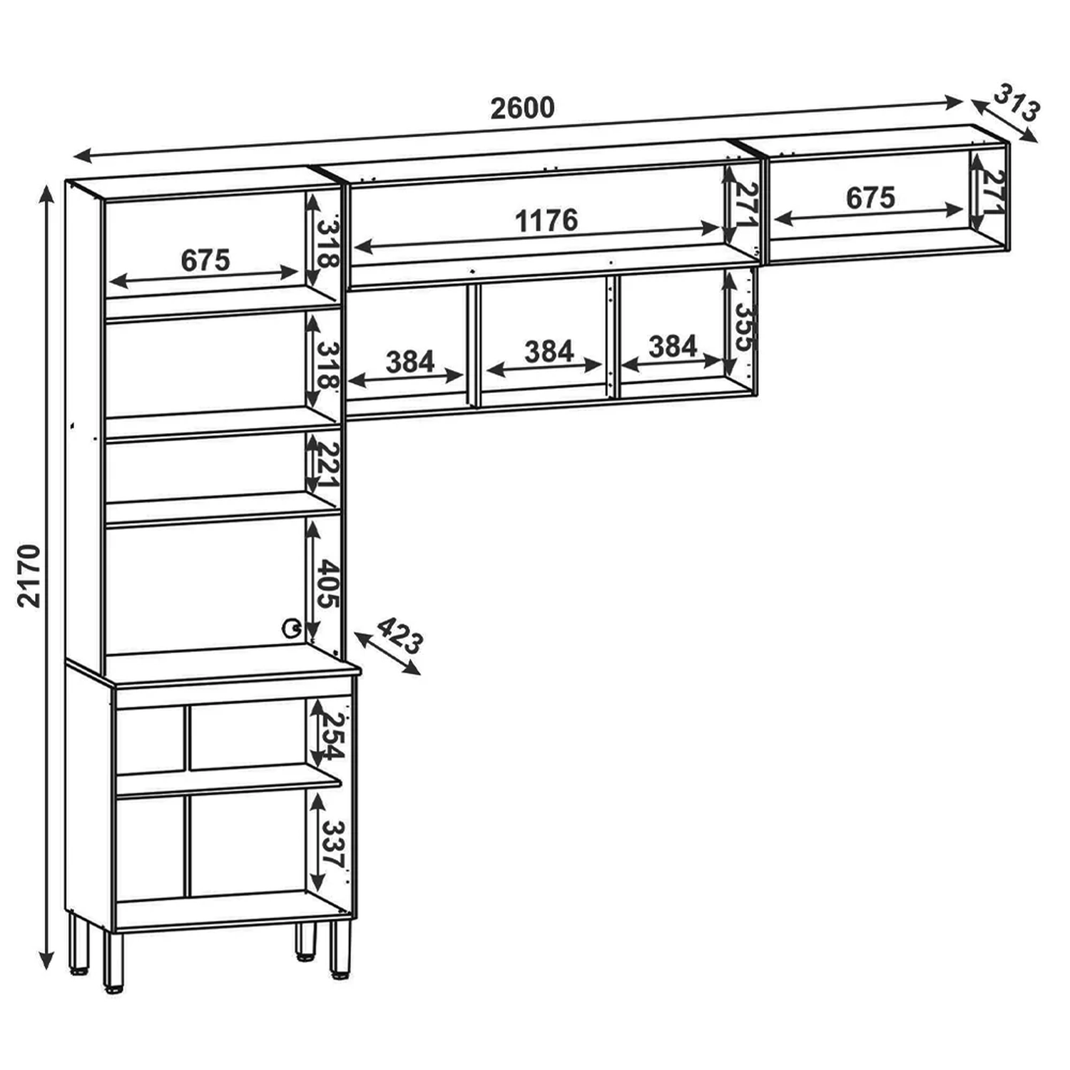 Paneleiro: 70 x 217 x 42,3 cm.
