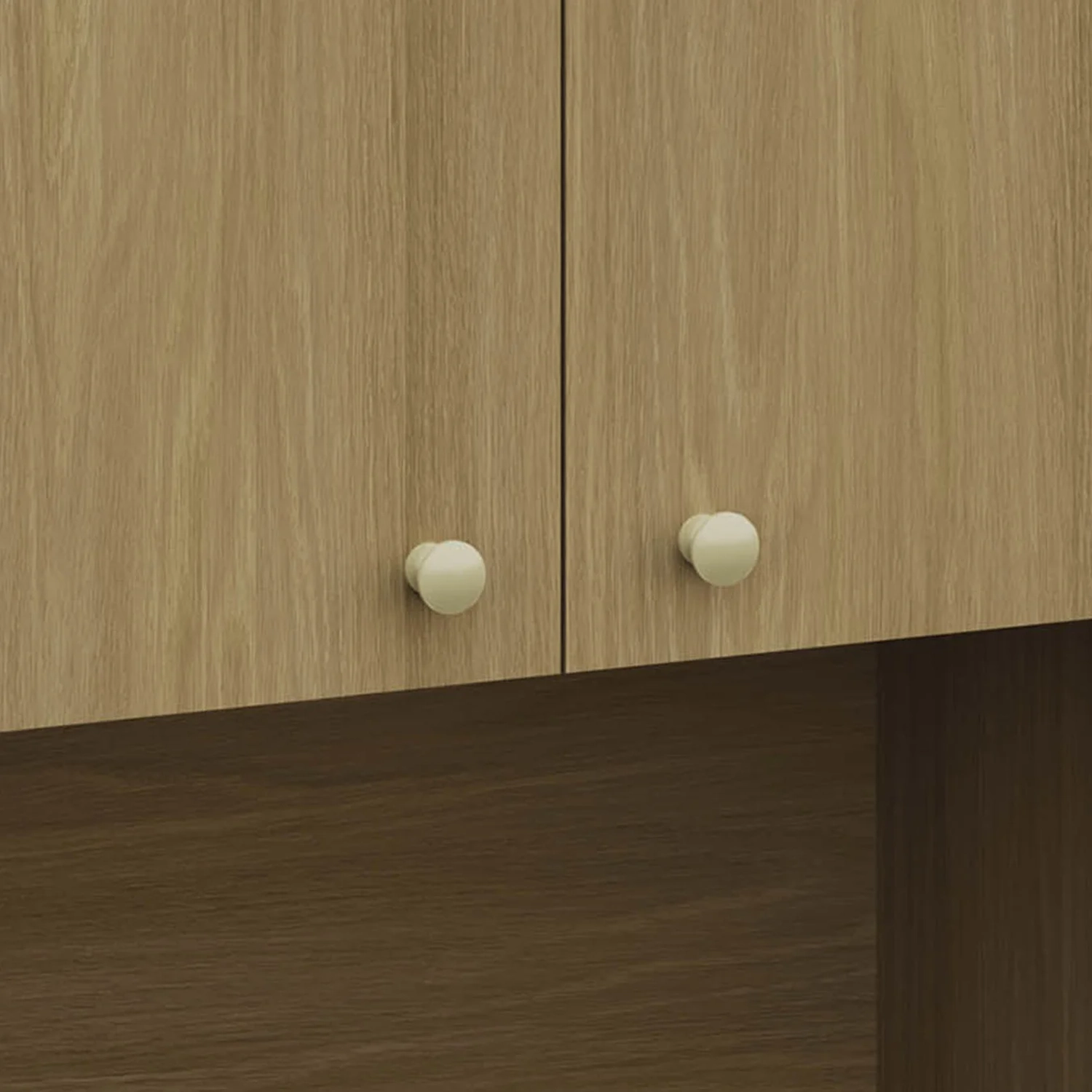 As portas do Armário com dobradiças metálicas e amortecimento garantem um fechamento suave e silencioso, proporcionando mais conforto e durabilidade no uso diário. Além disso, os puxadores em poliestireno oferecem um toque elegante e moderno.
