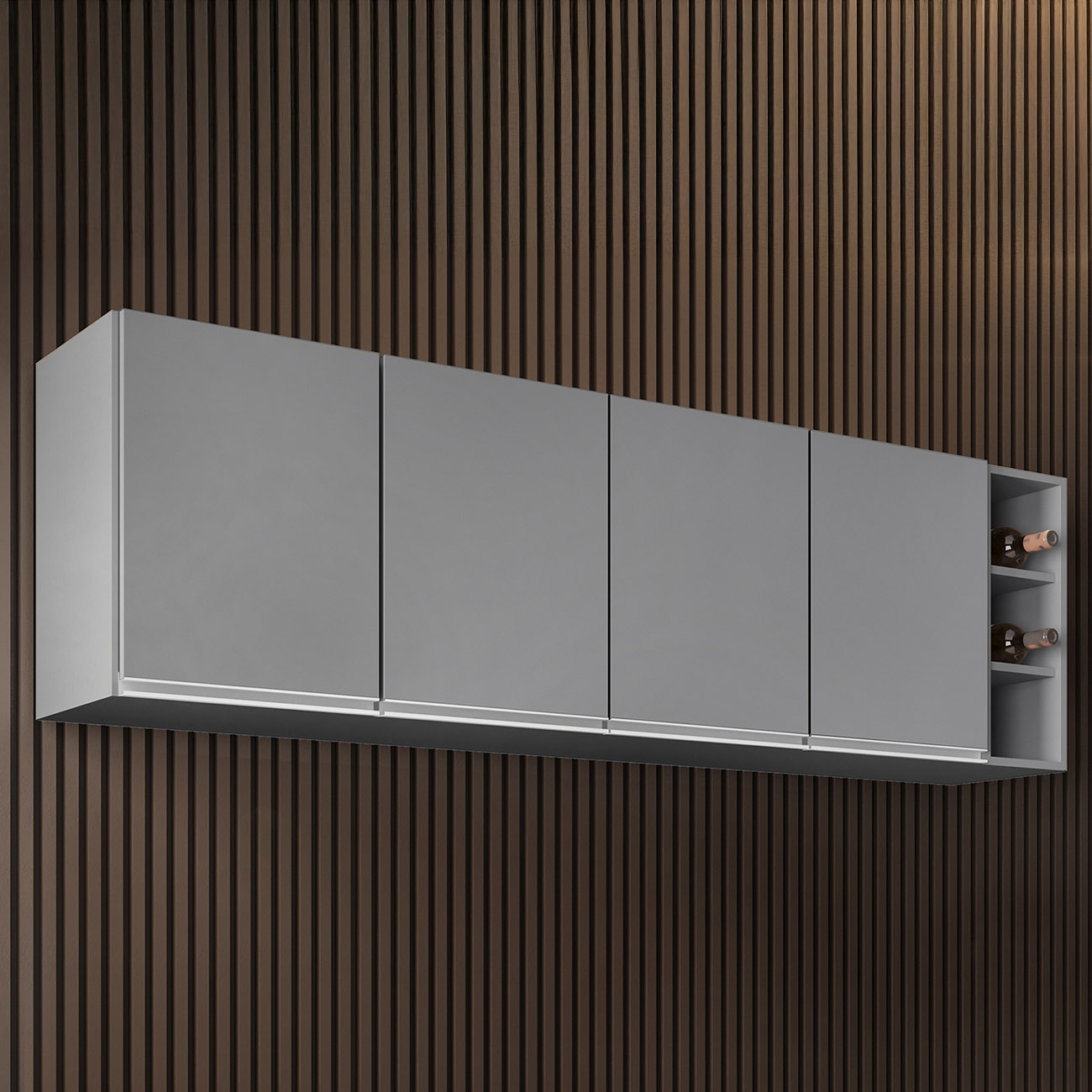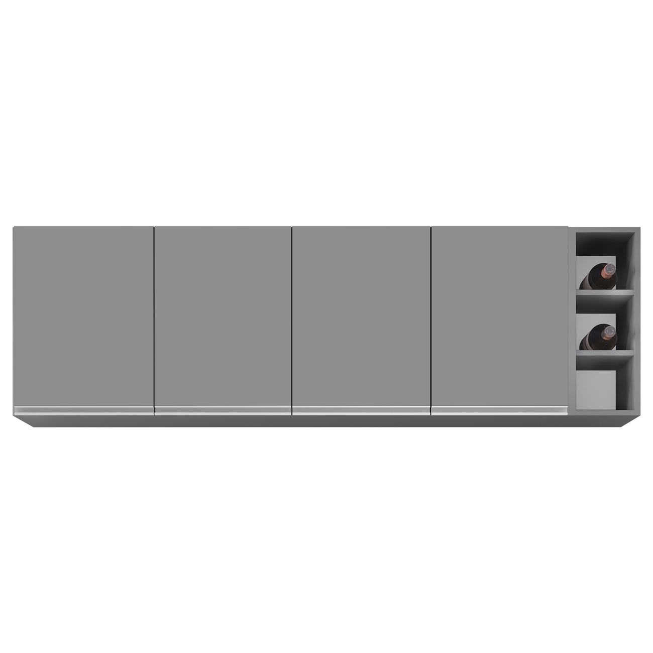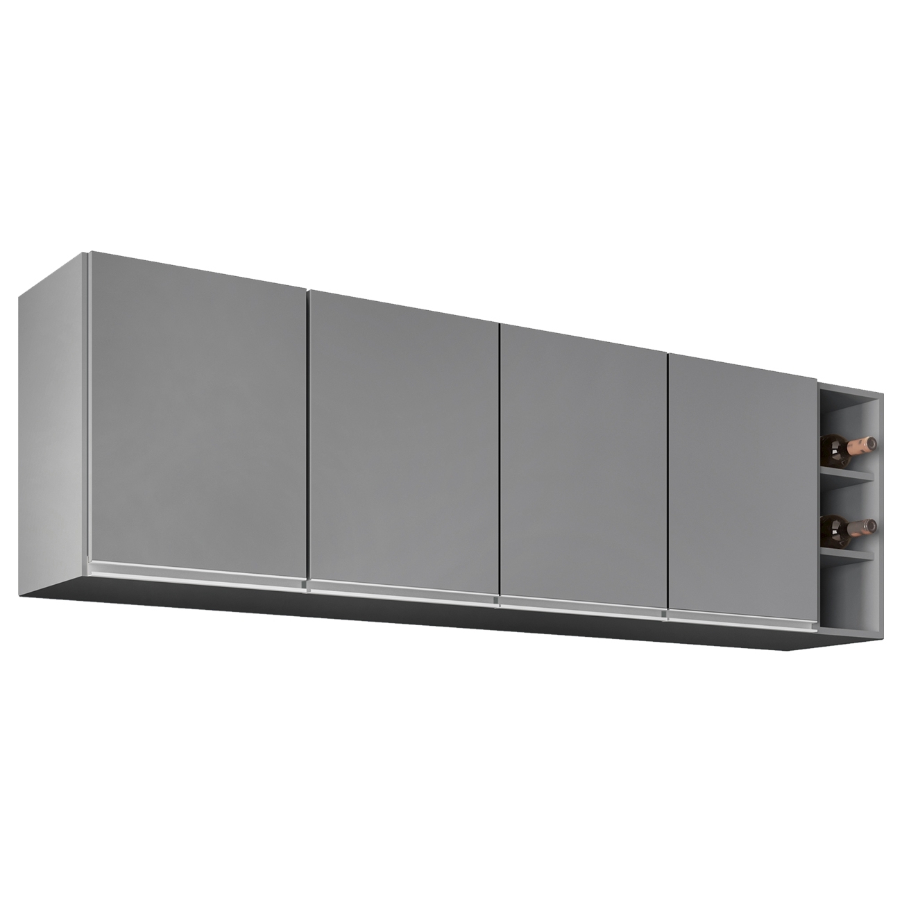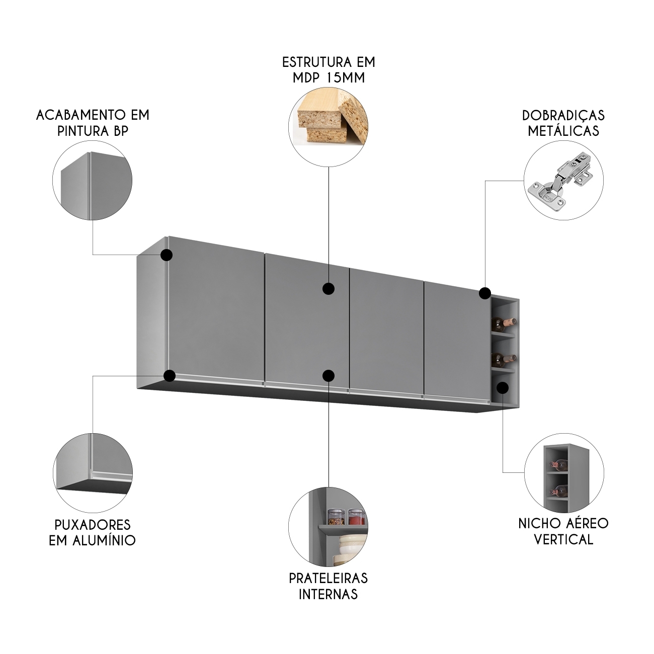Armário de Cozinha Aéreo 180cm Nevada Com Nicho Cinza - Lumil