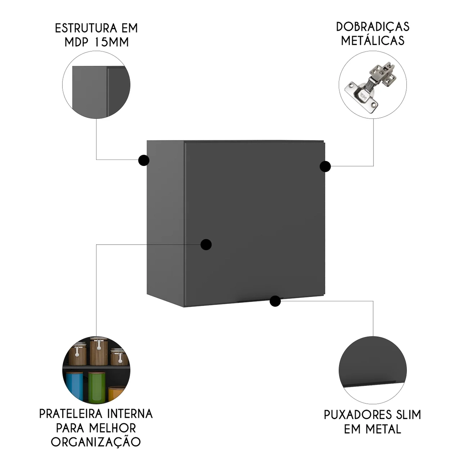 Armário de Cozinha Aéreo 58cm Grace Grafite Z44 - Mpozenato
