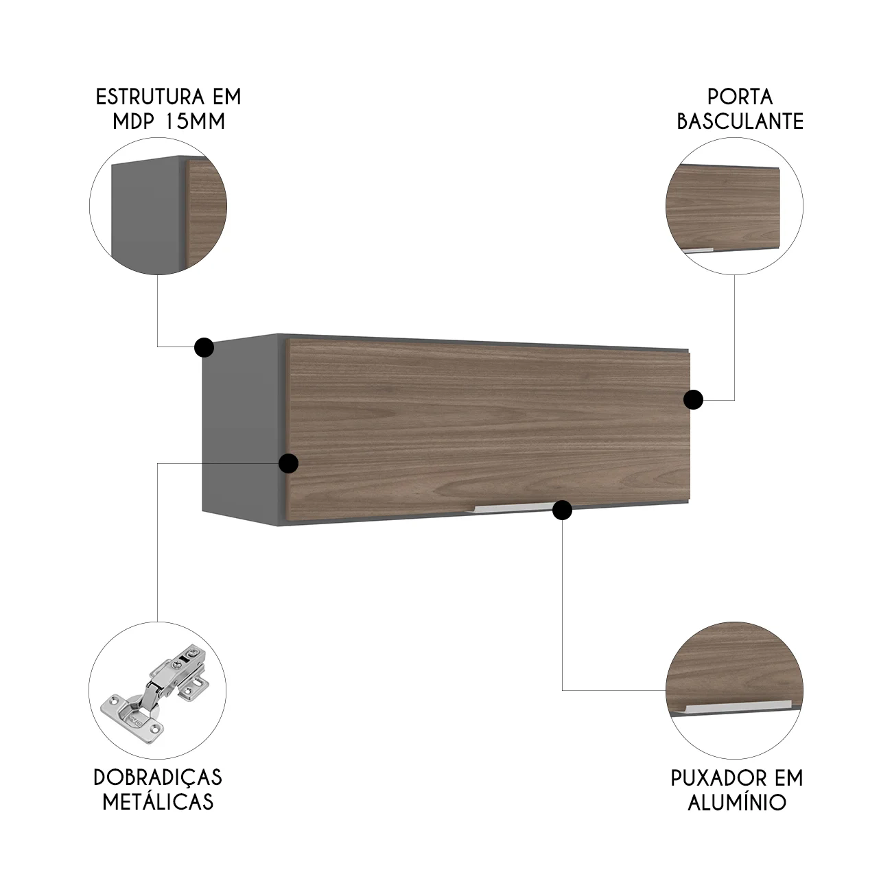Uma Cozinha bonita e funcional facilita o preparo das refeições, tornando o dia a dia mais agradável. Por isso, o Armário de Cozinha Aéreo 70cm Pérola Z34 Grafite/Freijó, da Mpozenato é o complemento perfeito para transformar sua casa!