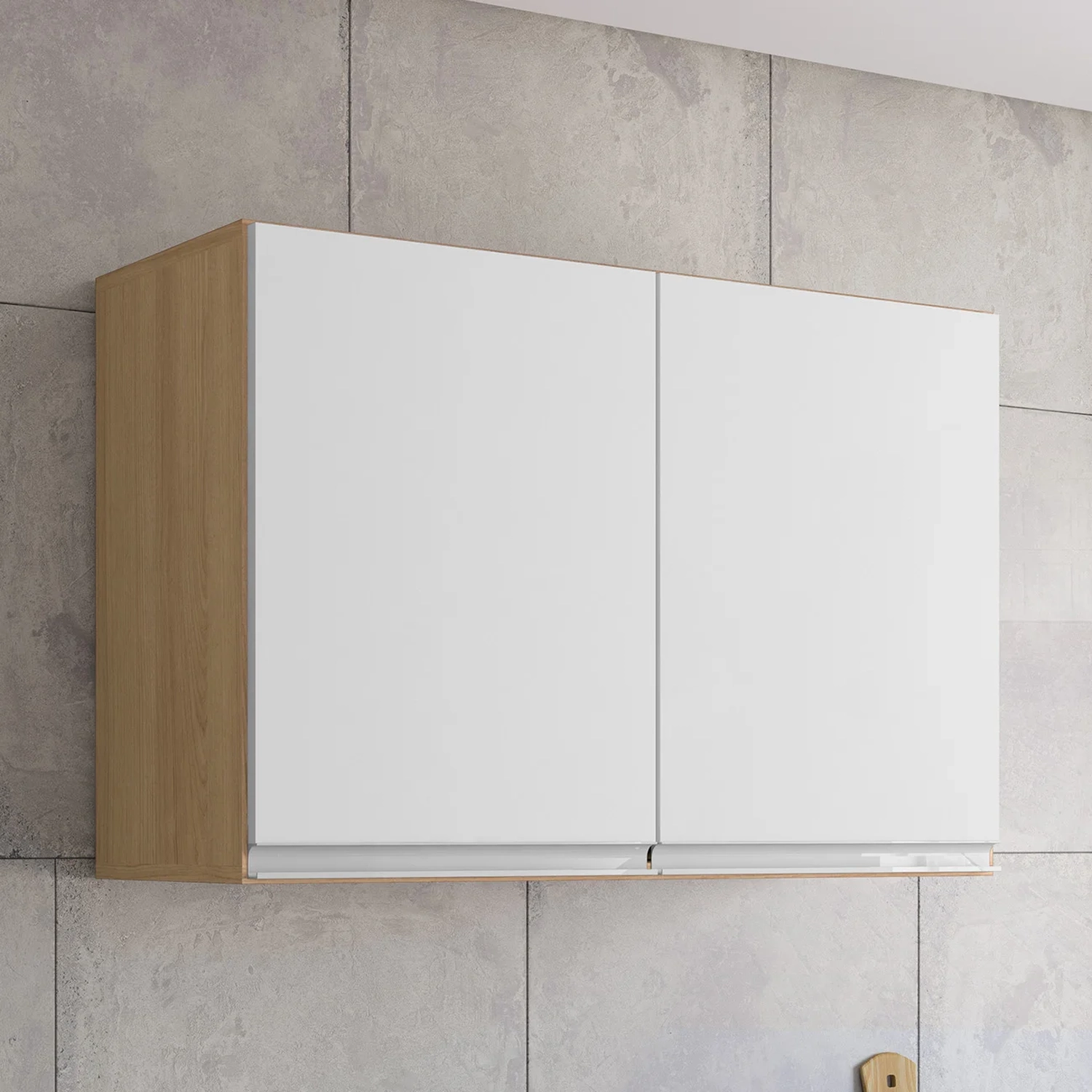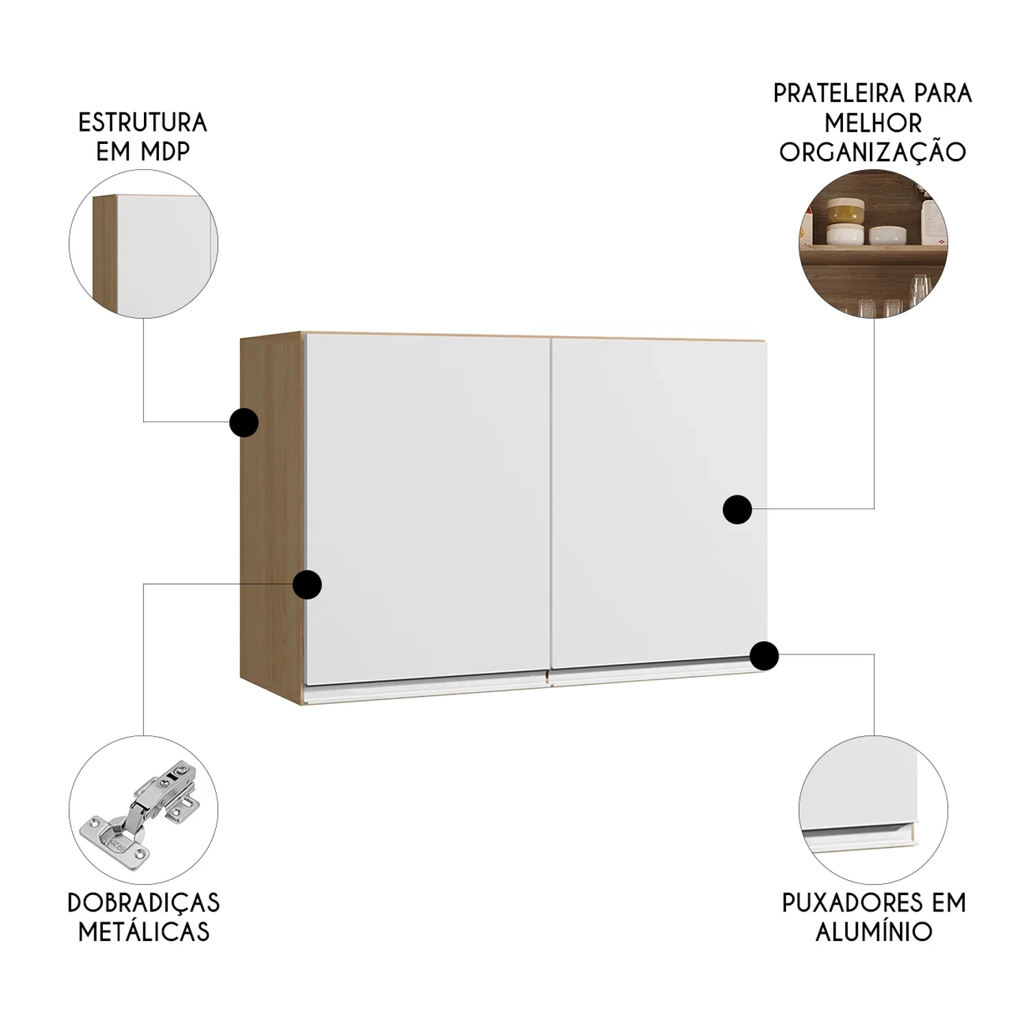 Armário de Cozinha Aéreo 80cm Com 2 Portas Andréia Amêndoa/Branco - AJL Móveis