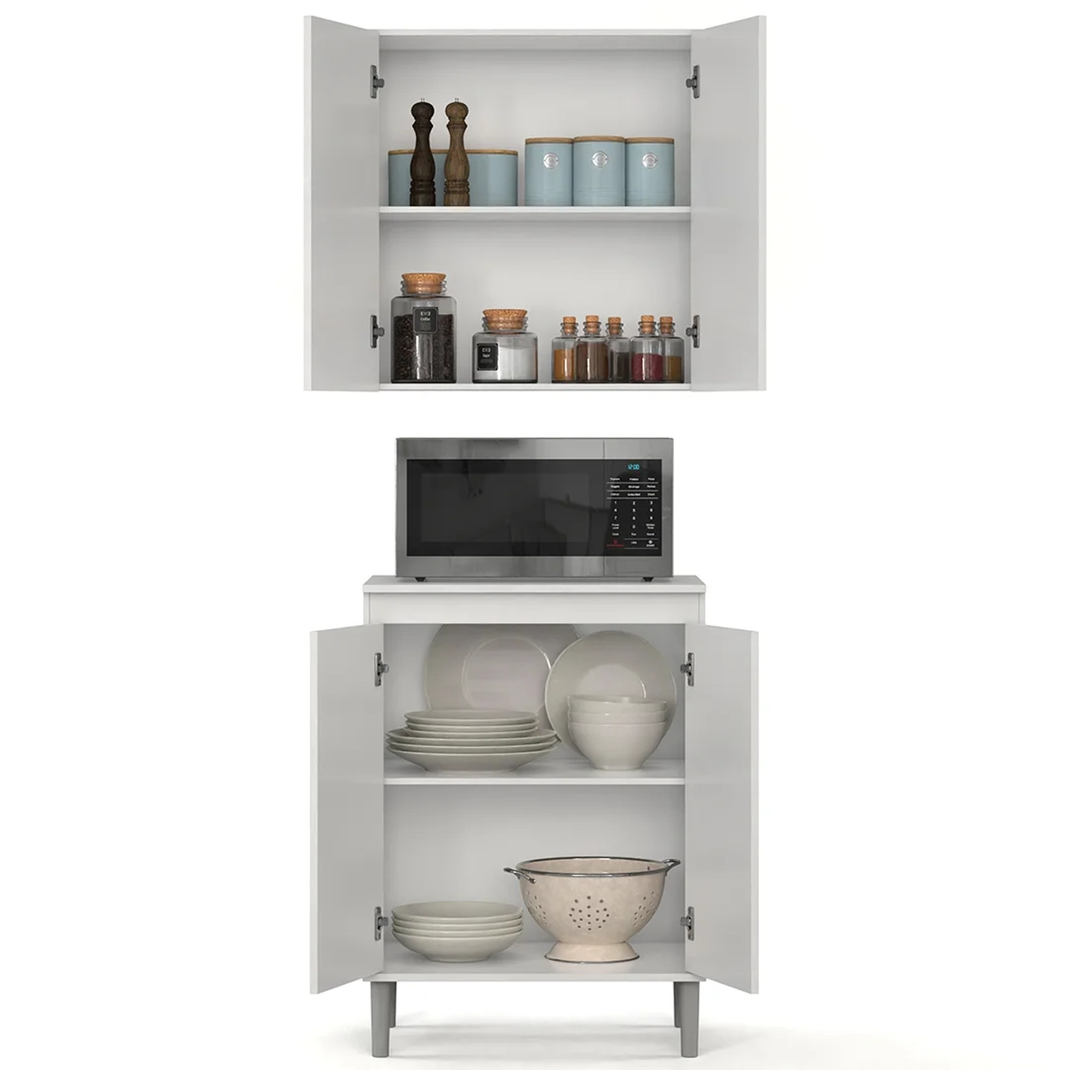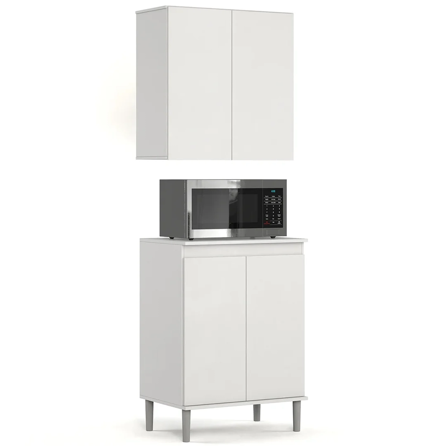 Com o armário aéreo duas portas e uma prateleira você terá acesso rápido e prático aos seus itens mais utilizados, proporcionando uma experiência fluida e livre de bagunças. Ao passo que com o balcão com tampo, você terá um espaço é ideal para acomodar aparelhos domésticos, permitindo que você os tenha sempre à mão, prontos para uso. Nunca mais se preocupe em não ter lugar para instalar seu micro-ondas ou forno elétrico, pois com esse balcão de cozinha, eles estarão sempre organizados e ao seu alcance. Além disso, o compartimento interno com uma prateleira é ideal para dispor potes de temperos, louças, mantimentos e o que mais for necessário. Assim, sua cozinha ganhará funcionalidade e estilo na medida certa com esse balcão com aéreo.