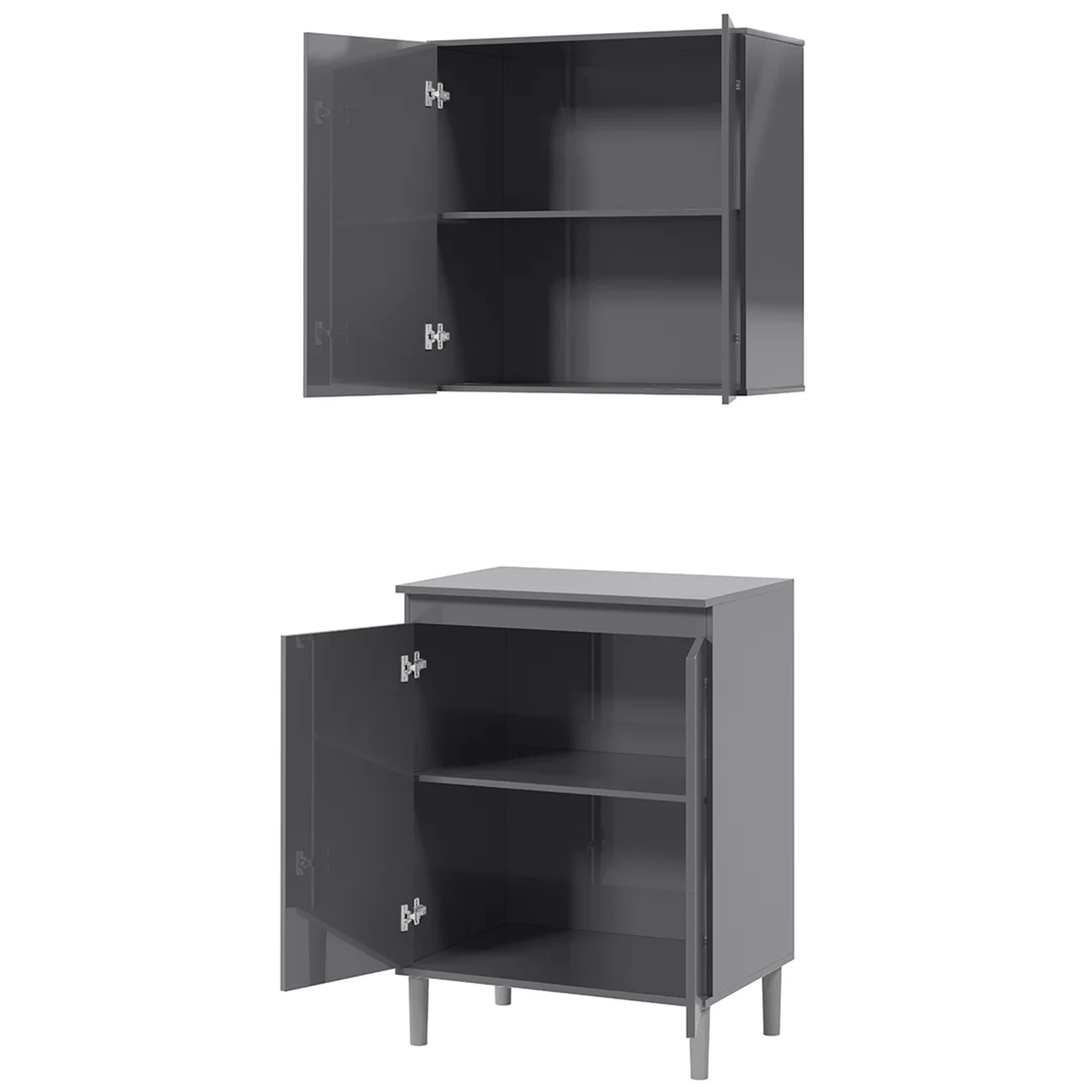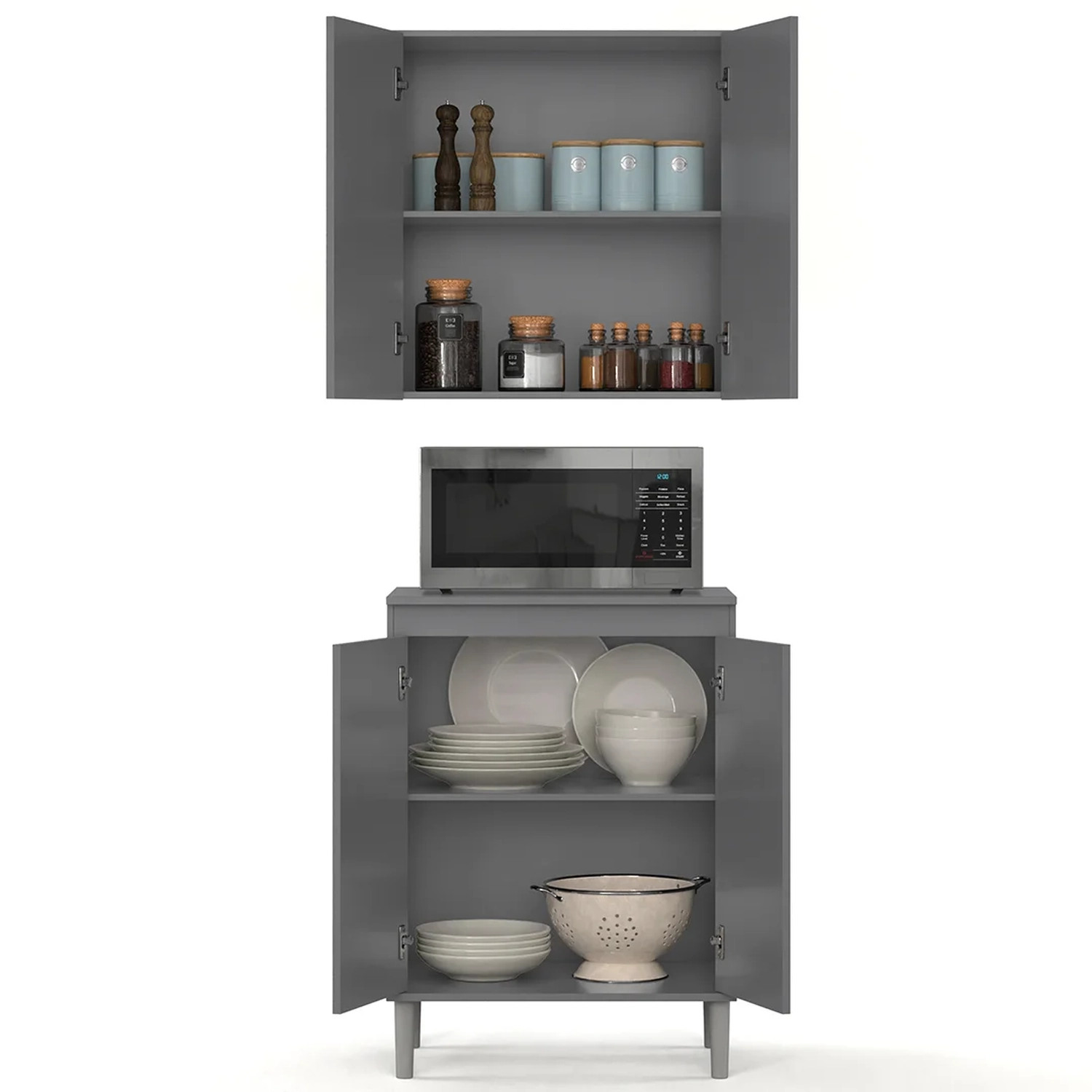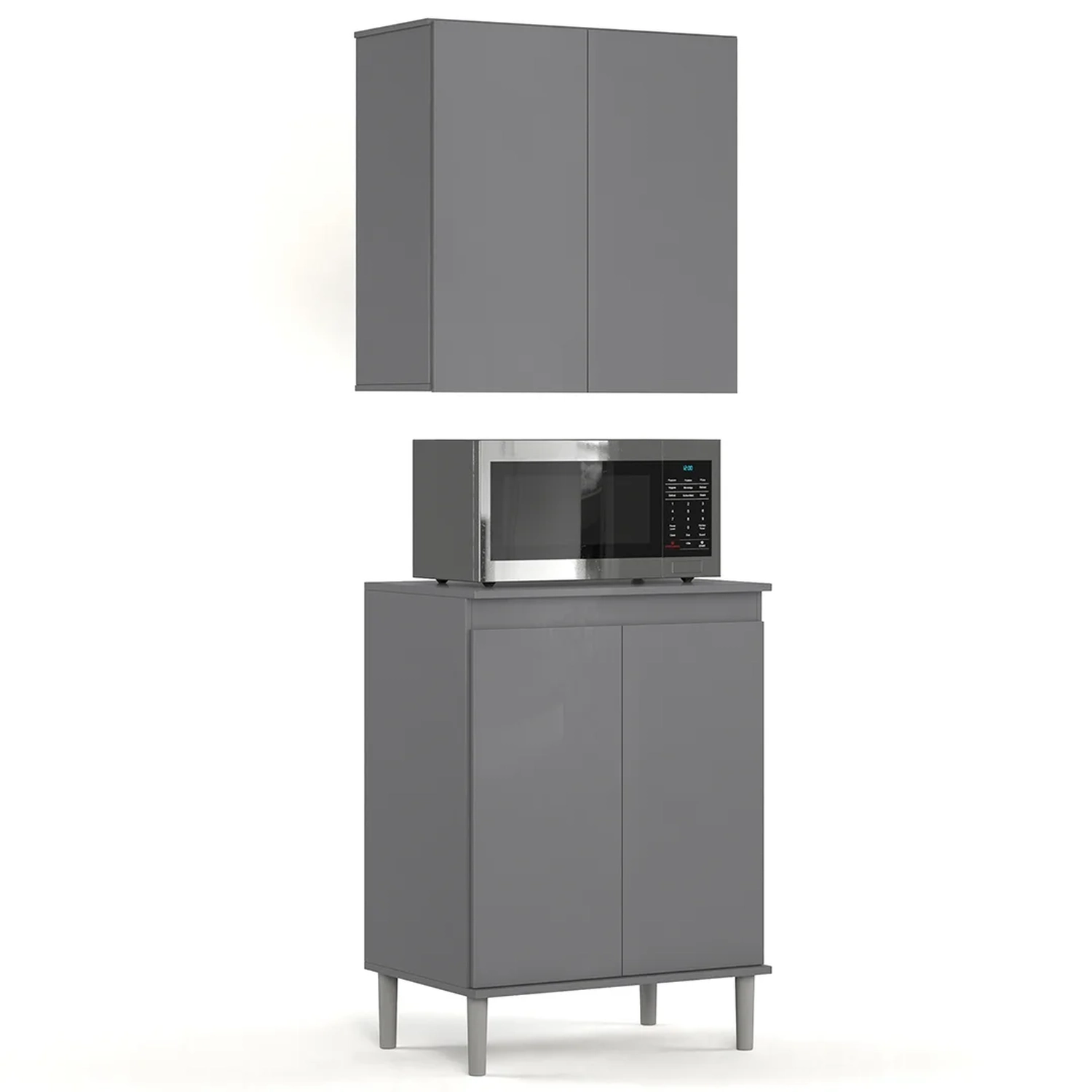 Deixe a sua cozinha ainda mais funcional e elegante com o Armário de Cozinha Aéreo e Balcão com Tampo Italy Cinza - EJ Móveis, perfeito para completar a decoração e organização do seu espaço.