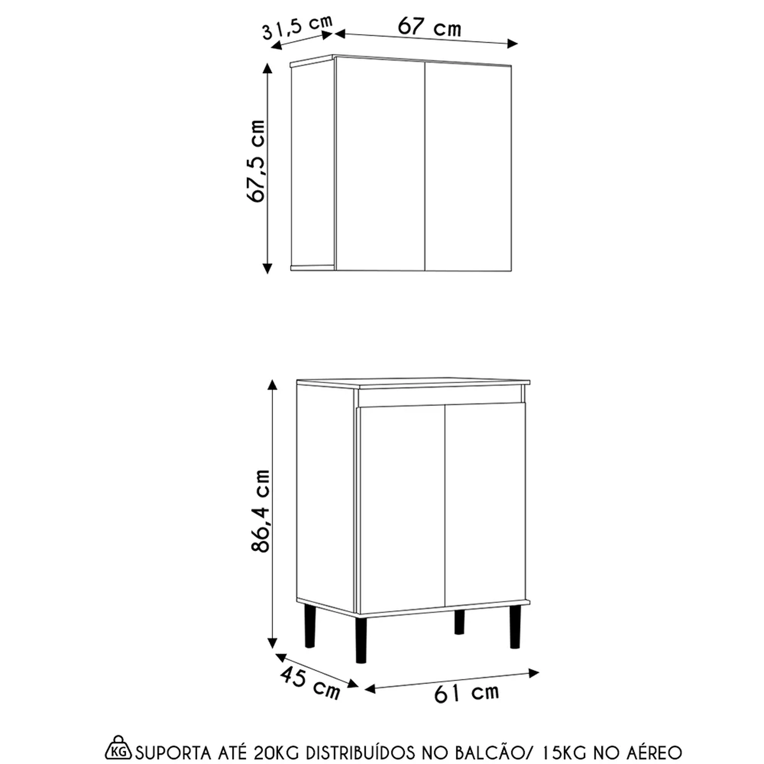 Conteúdo da Embalagem: 1 Balcão, 1 Armário Aéreo.