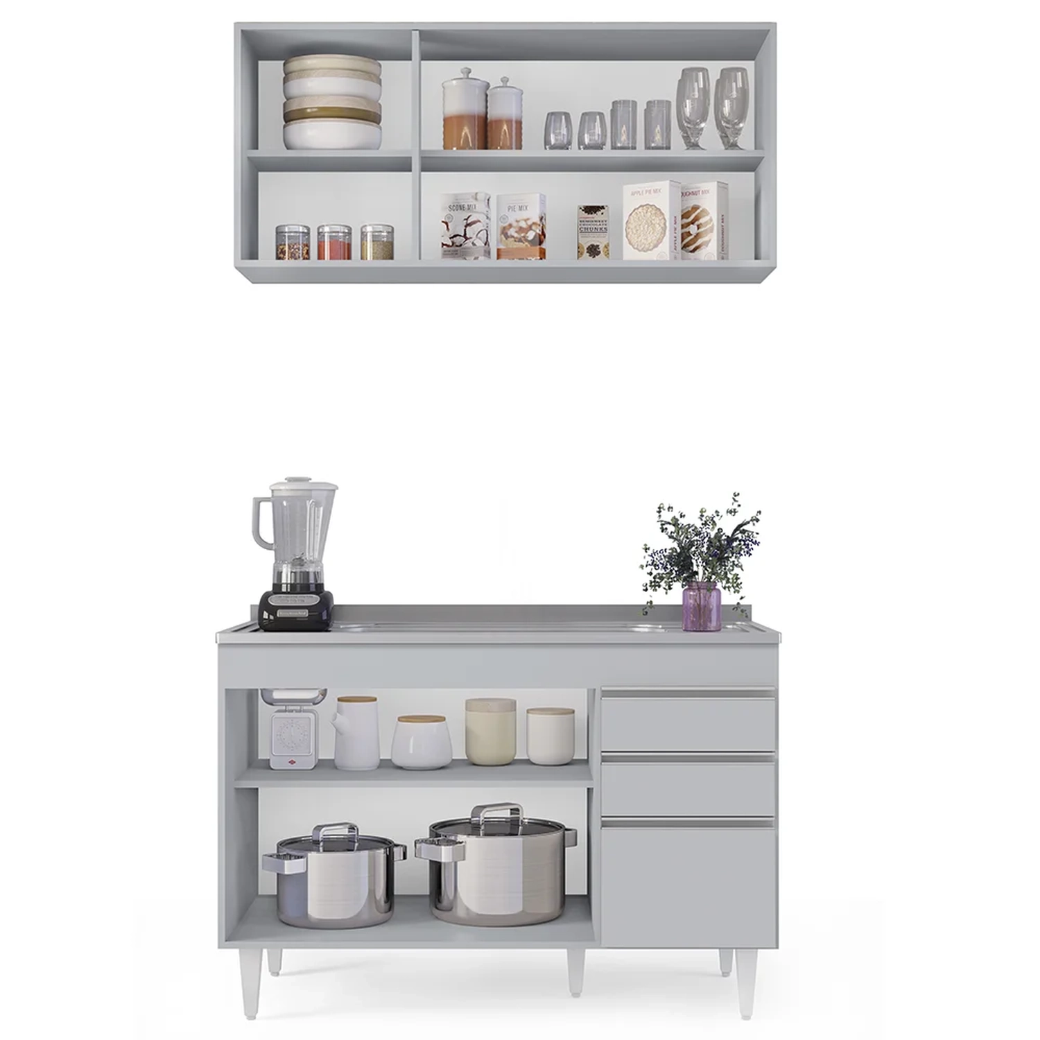 Confira agora o Armário de Cozinha Aéreo Virgínia e Balcão Com Pia 120cm Michigan Cinza Claro imperdível que a Lumil preparou e tenha a cozinha moderna e funcional que sempre quis!!