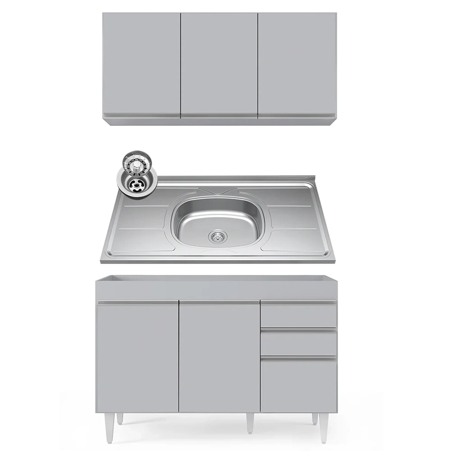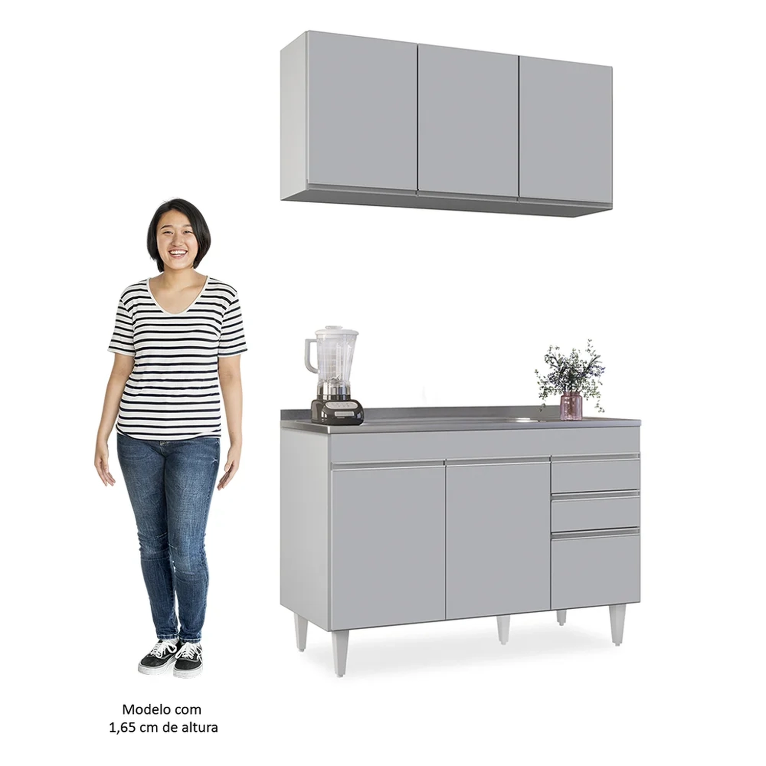 Conteúdo da Embalagem: 1 Armário Aéreo, 1 Balcão, 1 Pia.