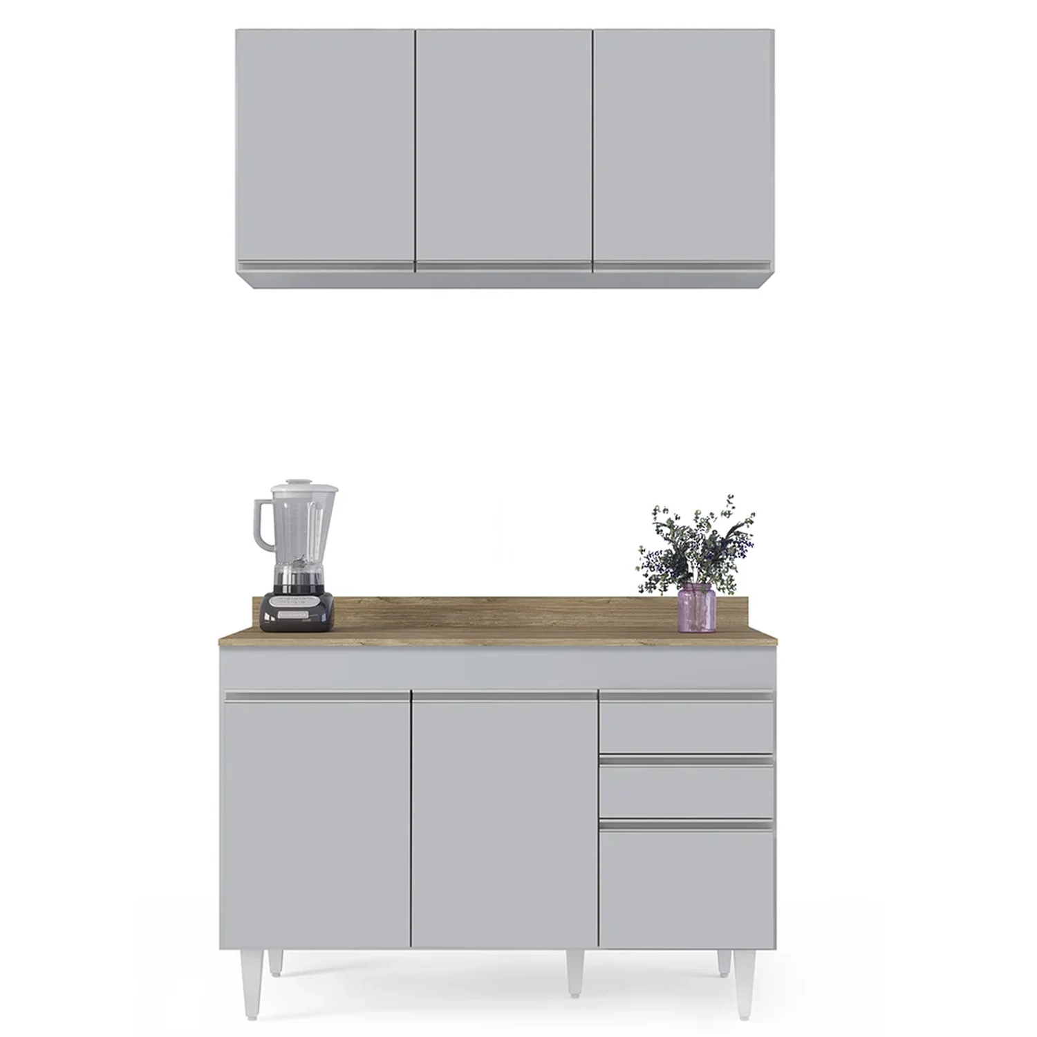 Armário de Cozinha Aéreo Virgínia e Balcão Com Tampo 120cm Michigan Cinza Claro/Castanho - Lumil 199148