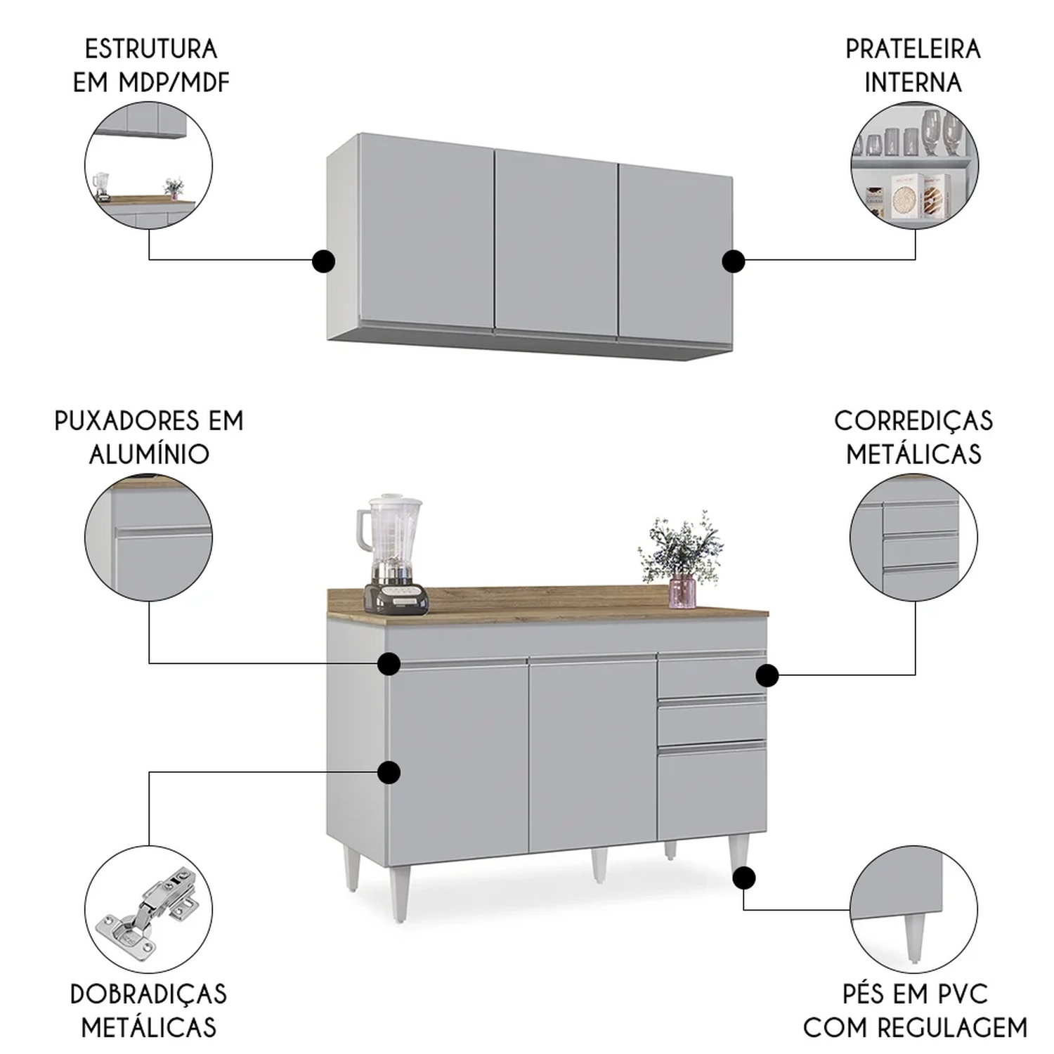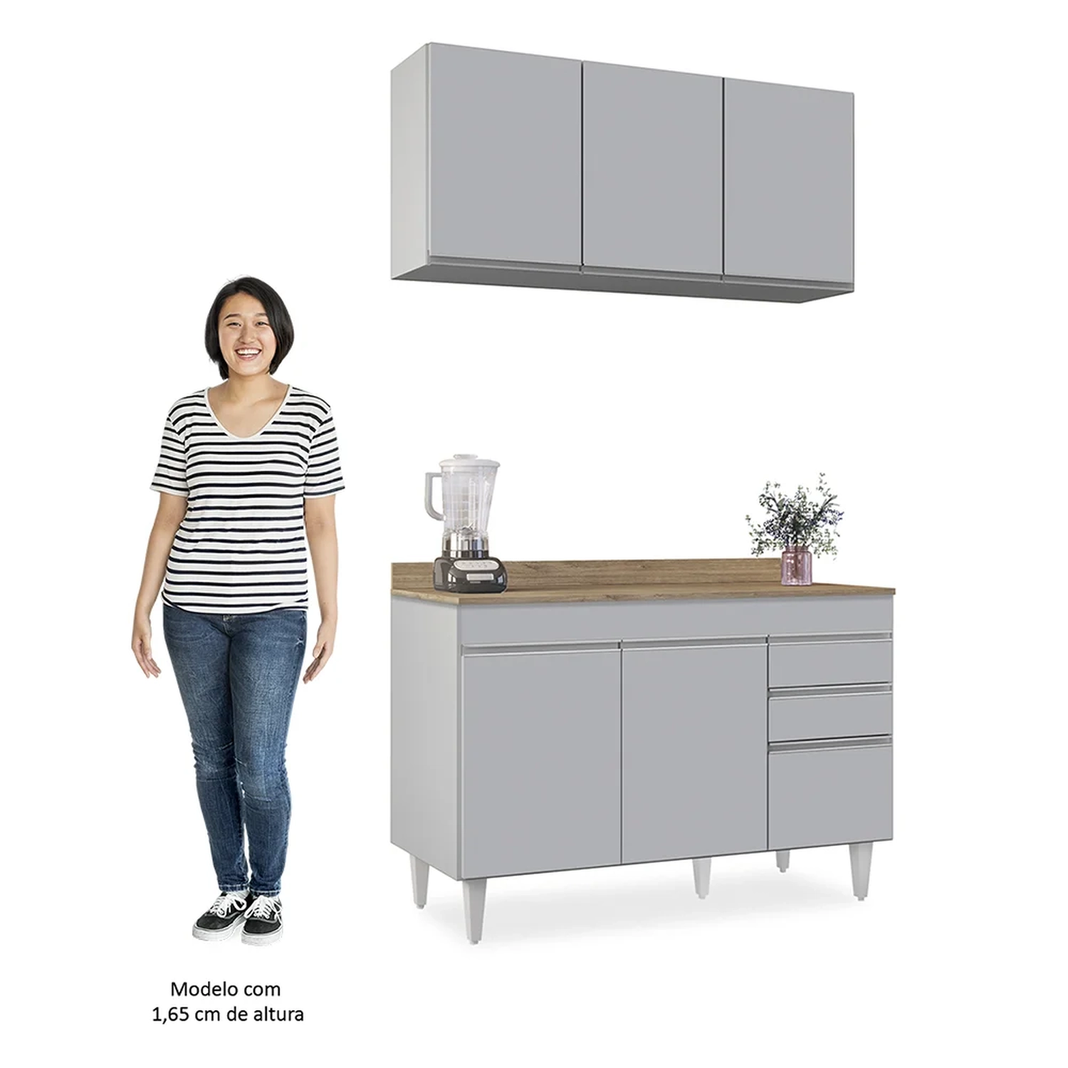 Confira o Armário de Cozinha Aéreo Virgínia e Balcão Com Tampo 120cm Michigan Cinza Claro imperdível que a Lumil preparou e tenha a Cozinha Moderna que sempre quis!!