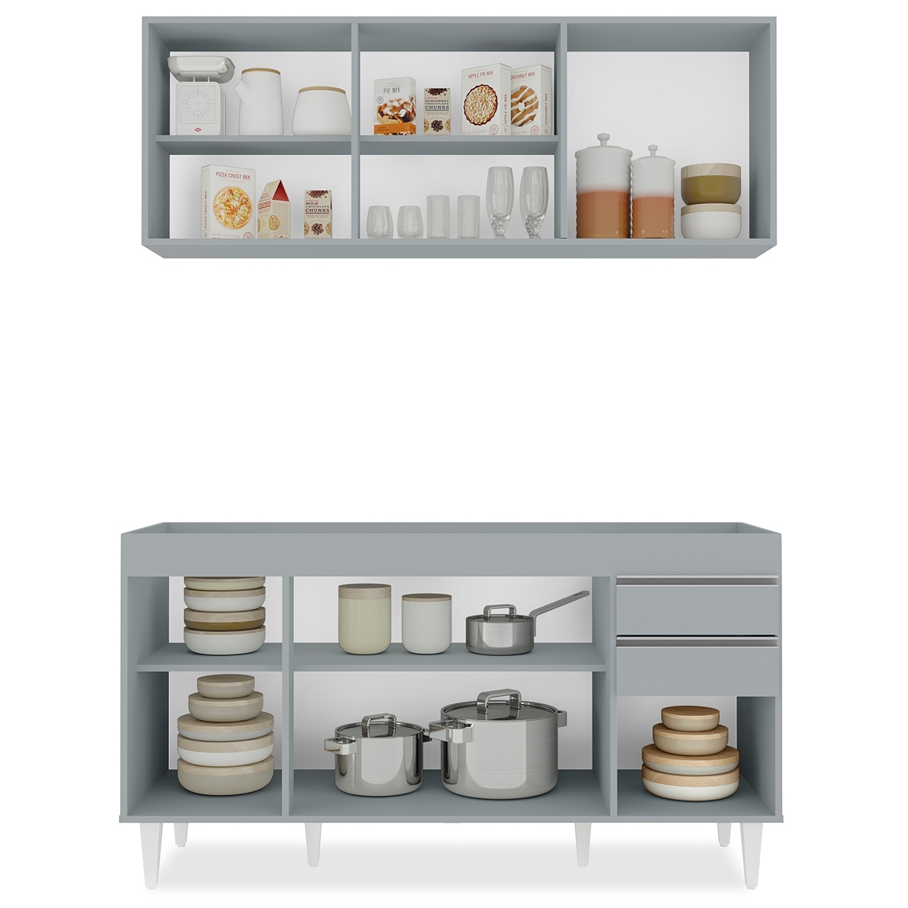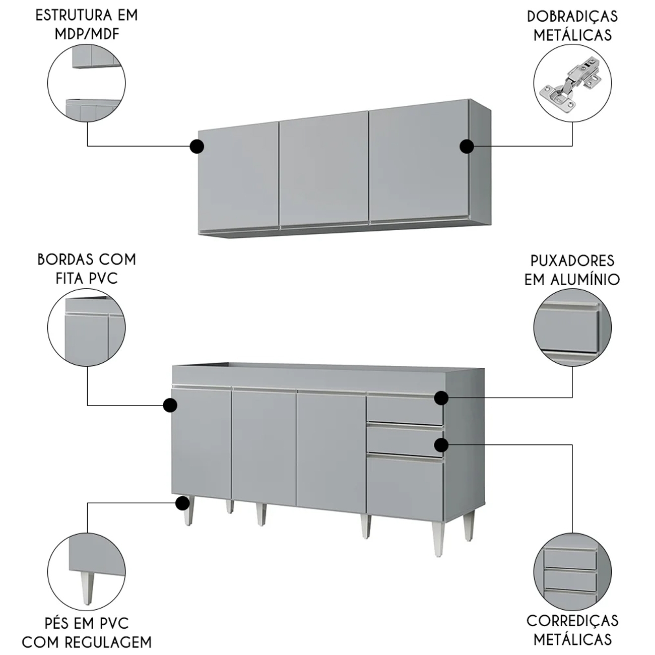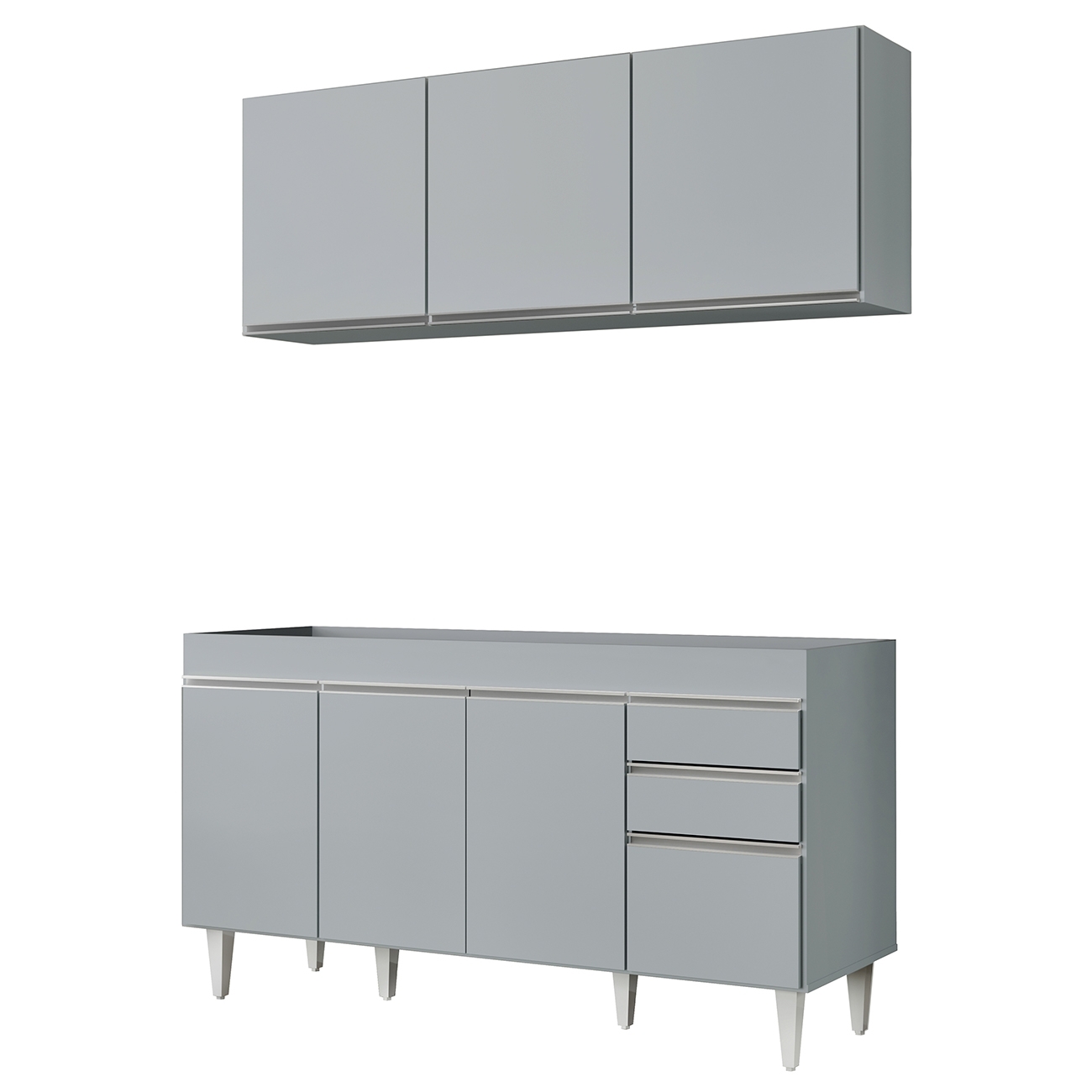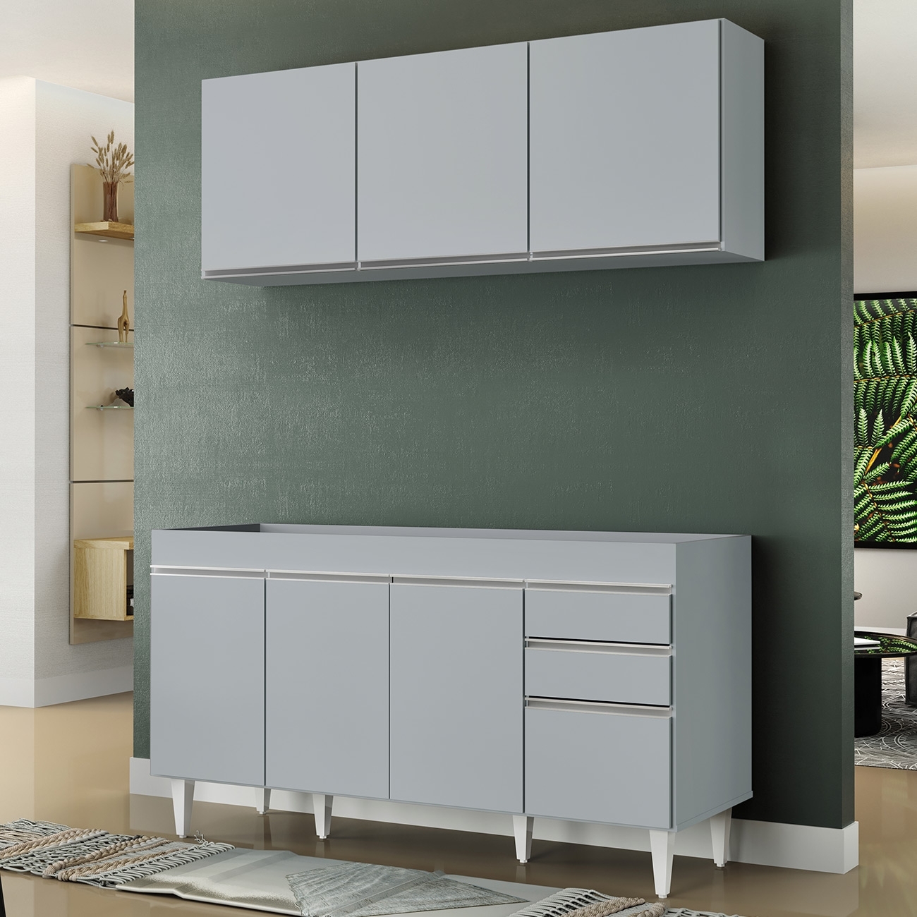 O Armário de Cozinha Argélia e Balcão Gabinete 150cm Marrocos sem Tampo Cinza Claro, da Lumil é uma escolha excelente para quem valoriza a praticidade e funcionalidade na Cozinha.