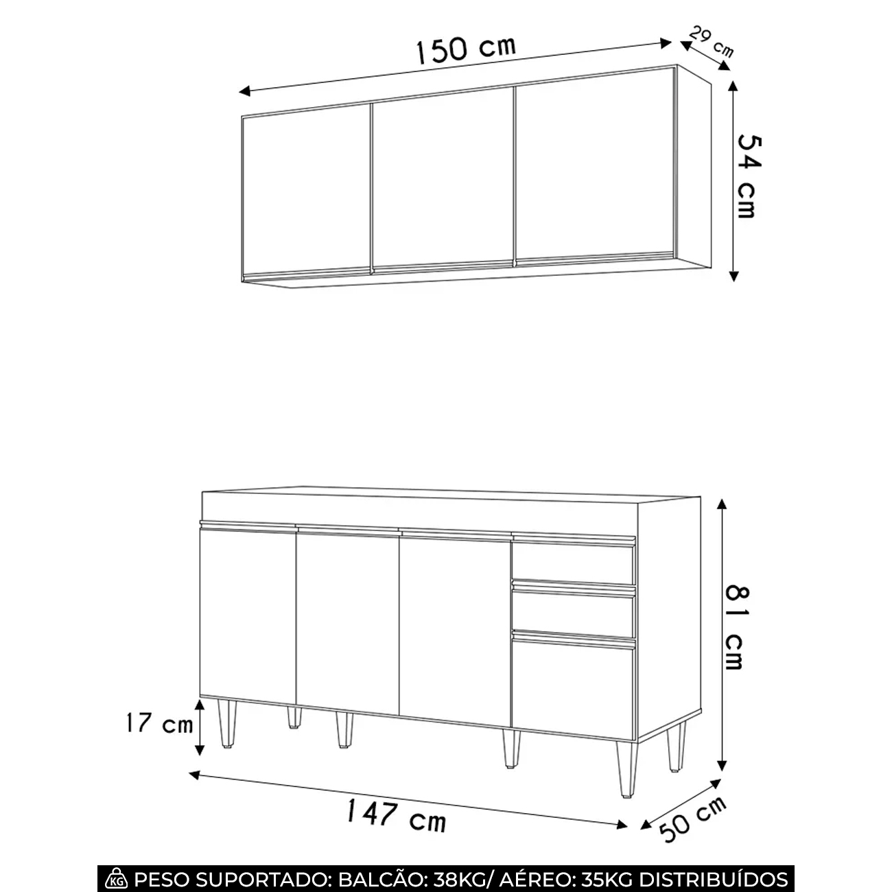 Conteúdo da Embalagem: 1 Armário Aéreo, 1 Balcão.