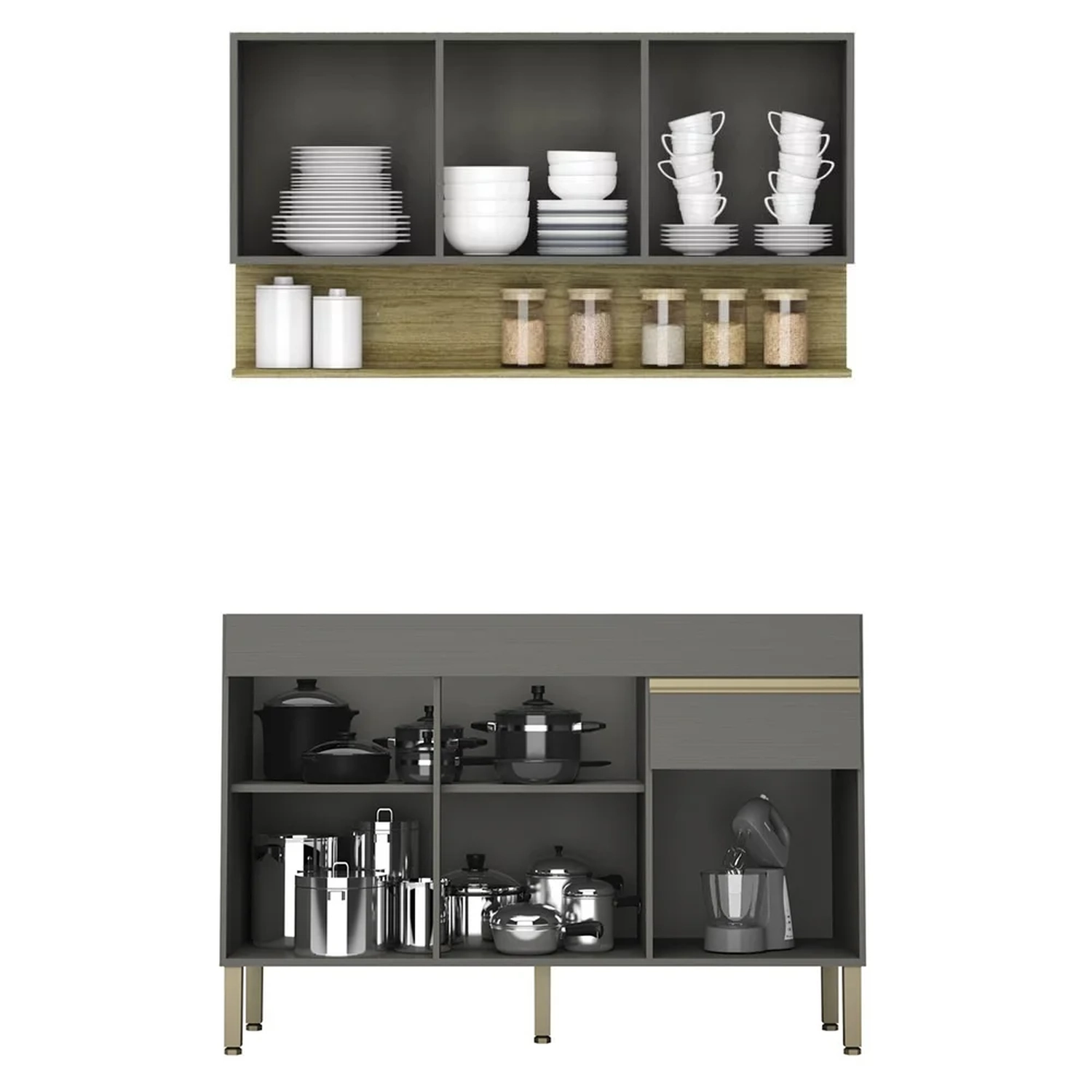 Conheça o Armário de Cozinha com Balcão sem Tampo 150cm Lina Z06 Gris/Freijó, da Mpozenato, perfeito para você que quer renovar a sua cozinha deixando mais moderna e funcional!