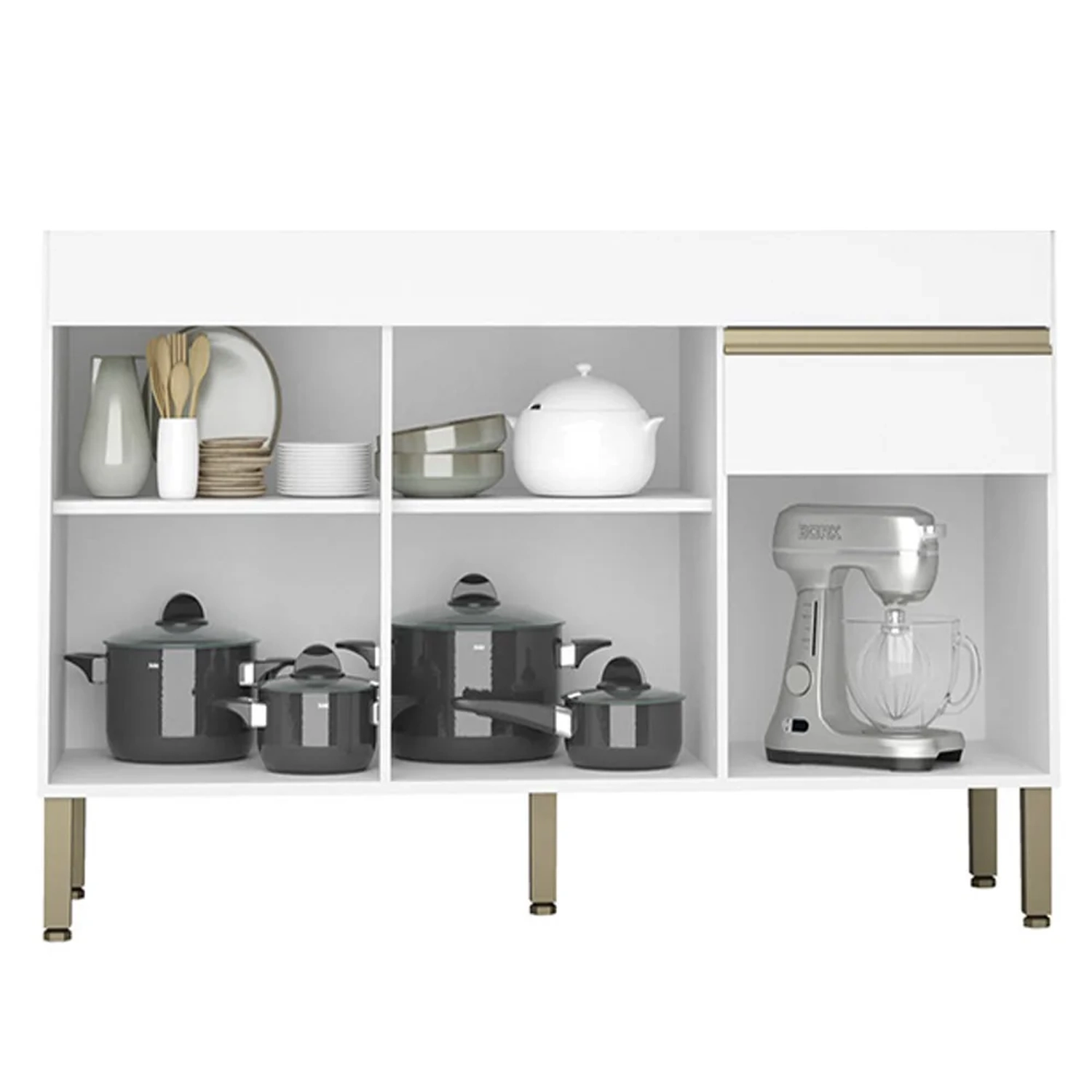 Conheça o Armário de Cozinha com Balcão sem Tampo 150cm Lina Z06 Supremo/Freijó, da Mpozenato, perfeito para você que quer renovar a sua cozinha deixando mais moderna e funcional!