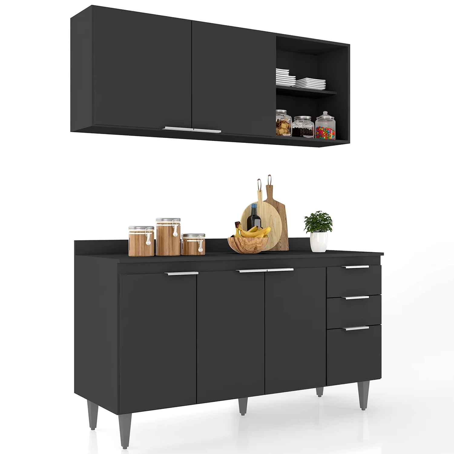 Montar a Cozinha dos seus sonhos nunca foi tão fácil. Com o Armário de Cozinha Com Tampo CP01 150cm Pérola Preto Z34 da Mpozenato, você transforma o ambiente, tornando-o mais moderno, funcional e perfeito para o seu dia a dia.