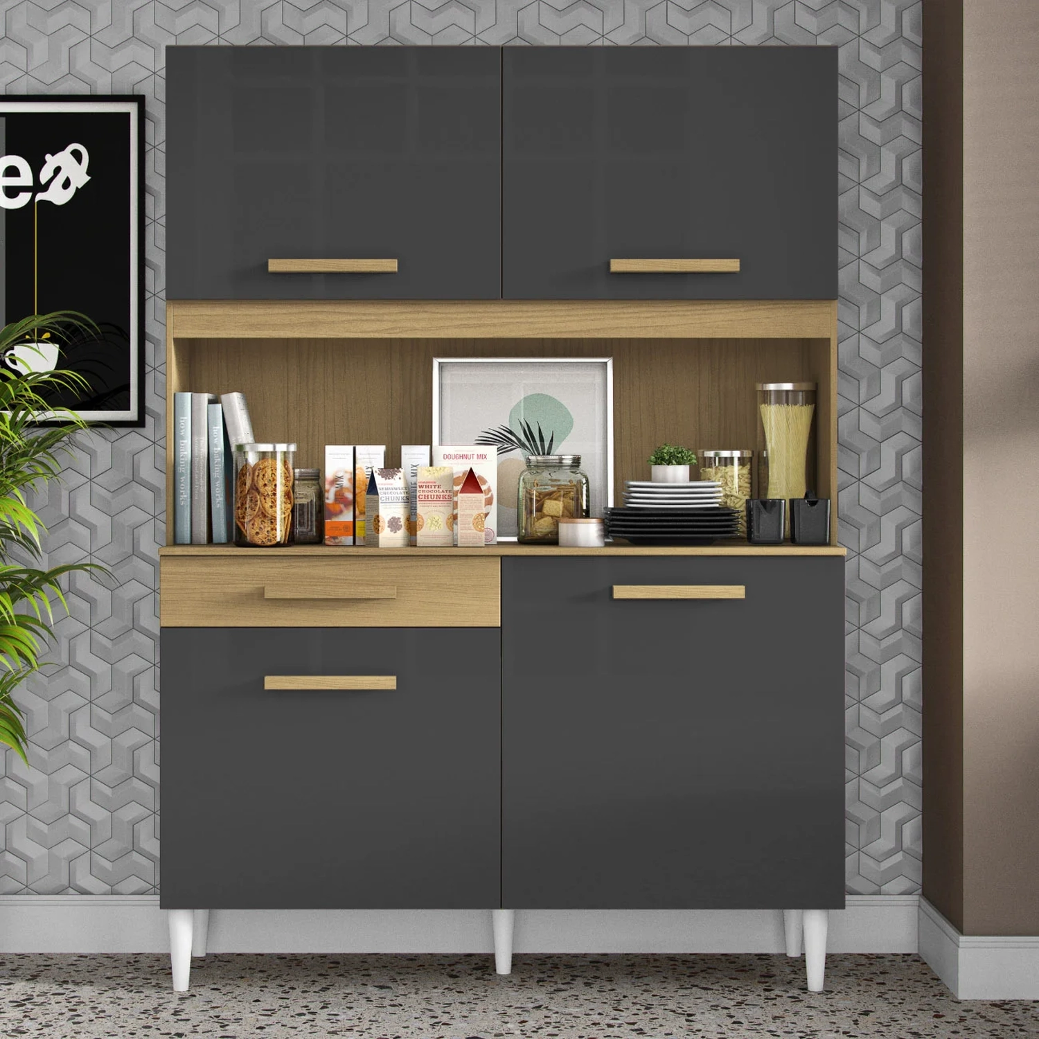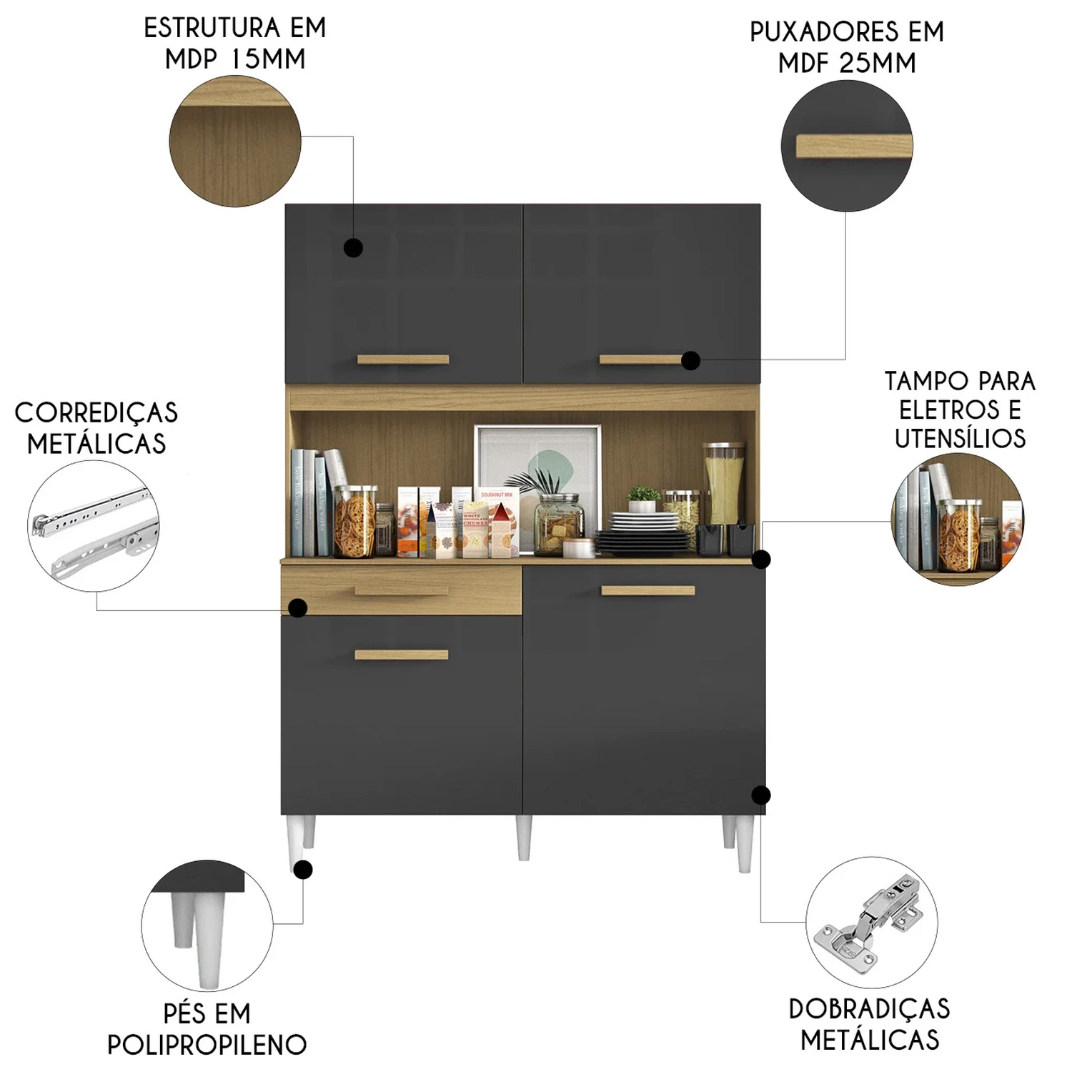 Armário de Cozinha Compacta 121cm Lyan Atacama/Grafite A15 - Mpozenato