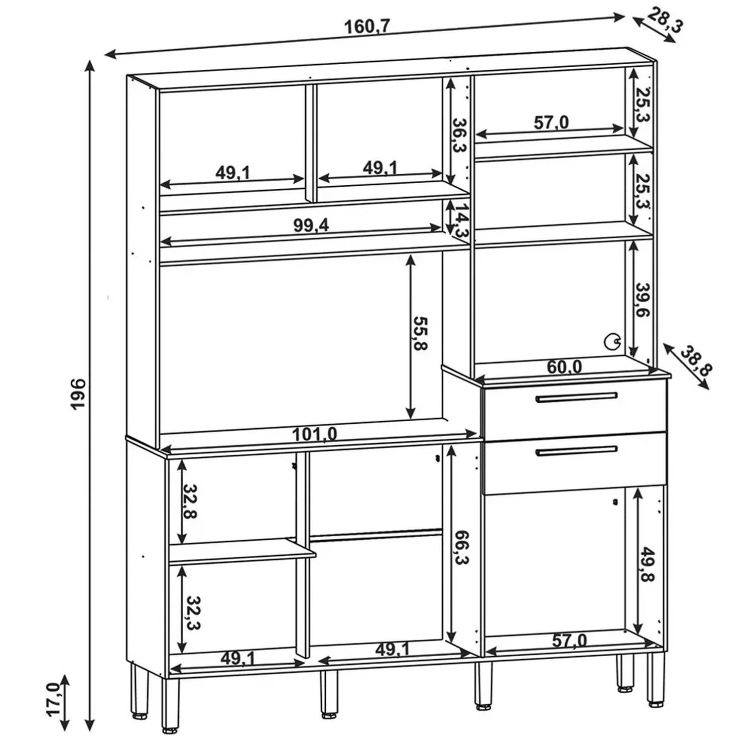 Largura: 160,7 cm.