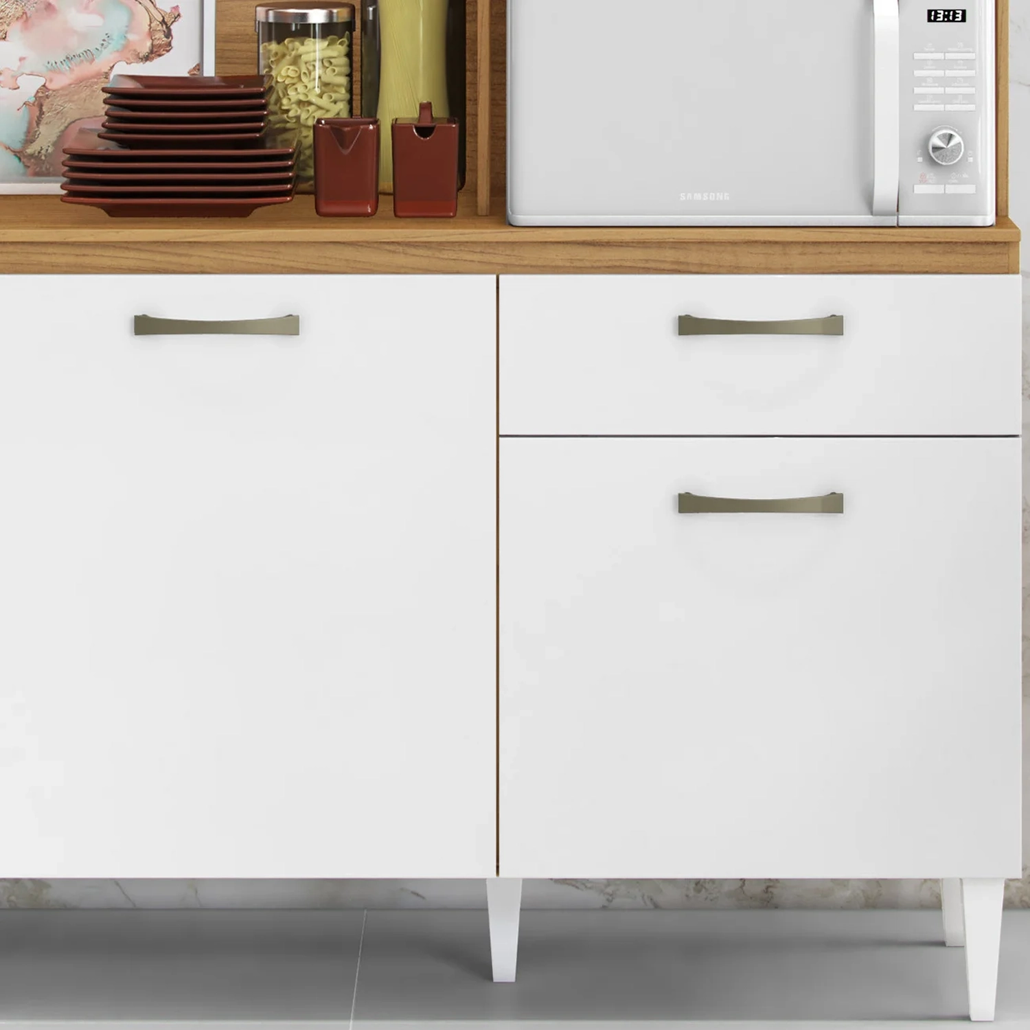 O Armário Para Cozinha tem um nicho perfeito para micro-ondas ou forno elétrico, deixando tudo organizado, ainda conta com uma superfície prática para melhor acesso.