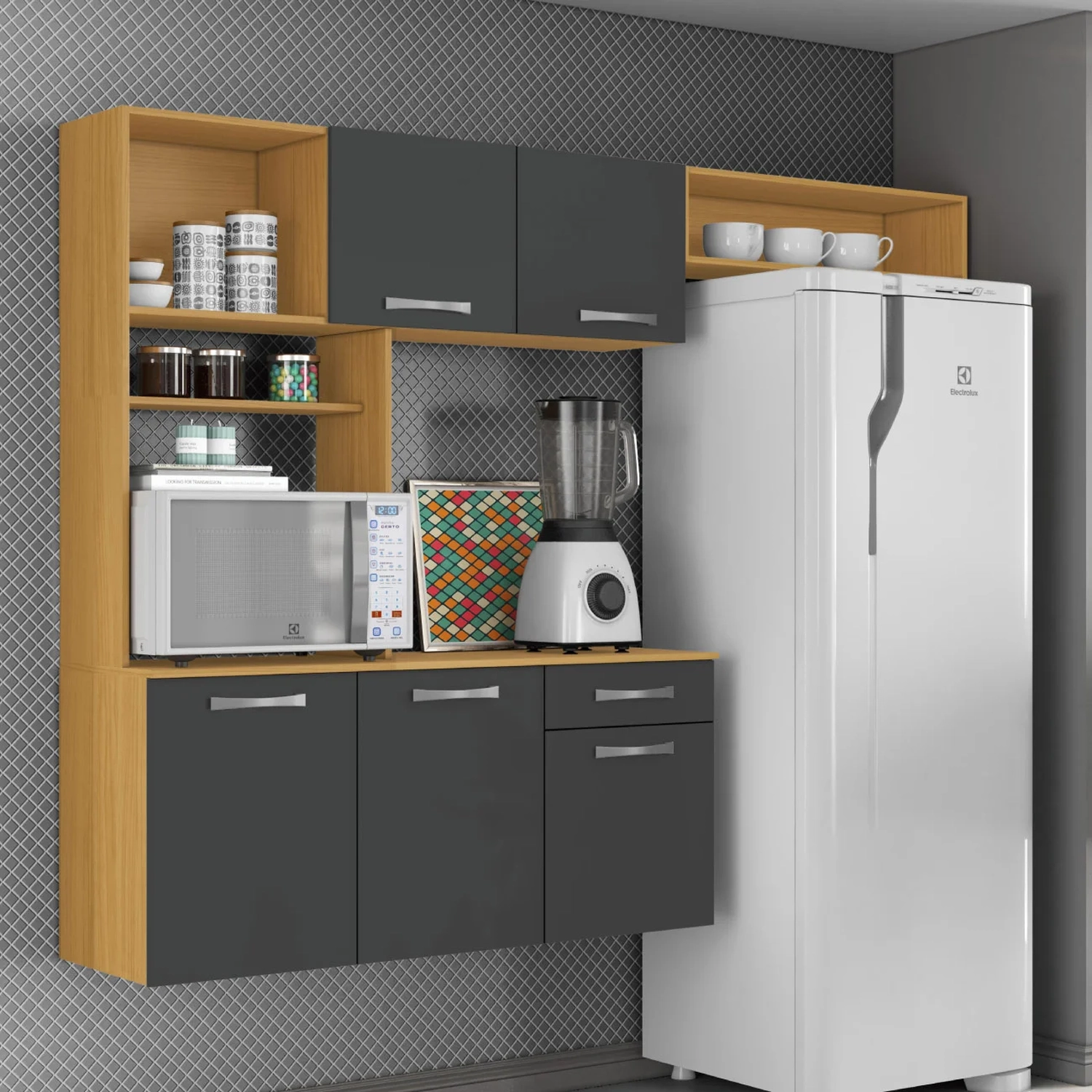 Armário de Cozinha Compacta 180cm Maxyn Cinamomo/Grafite A15 - Mpozenato
