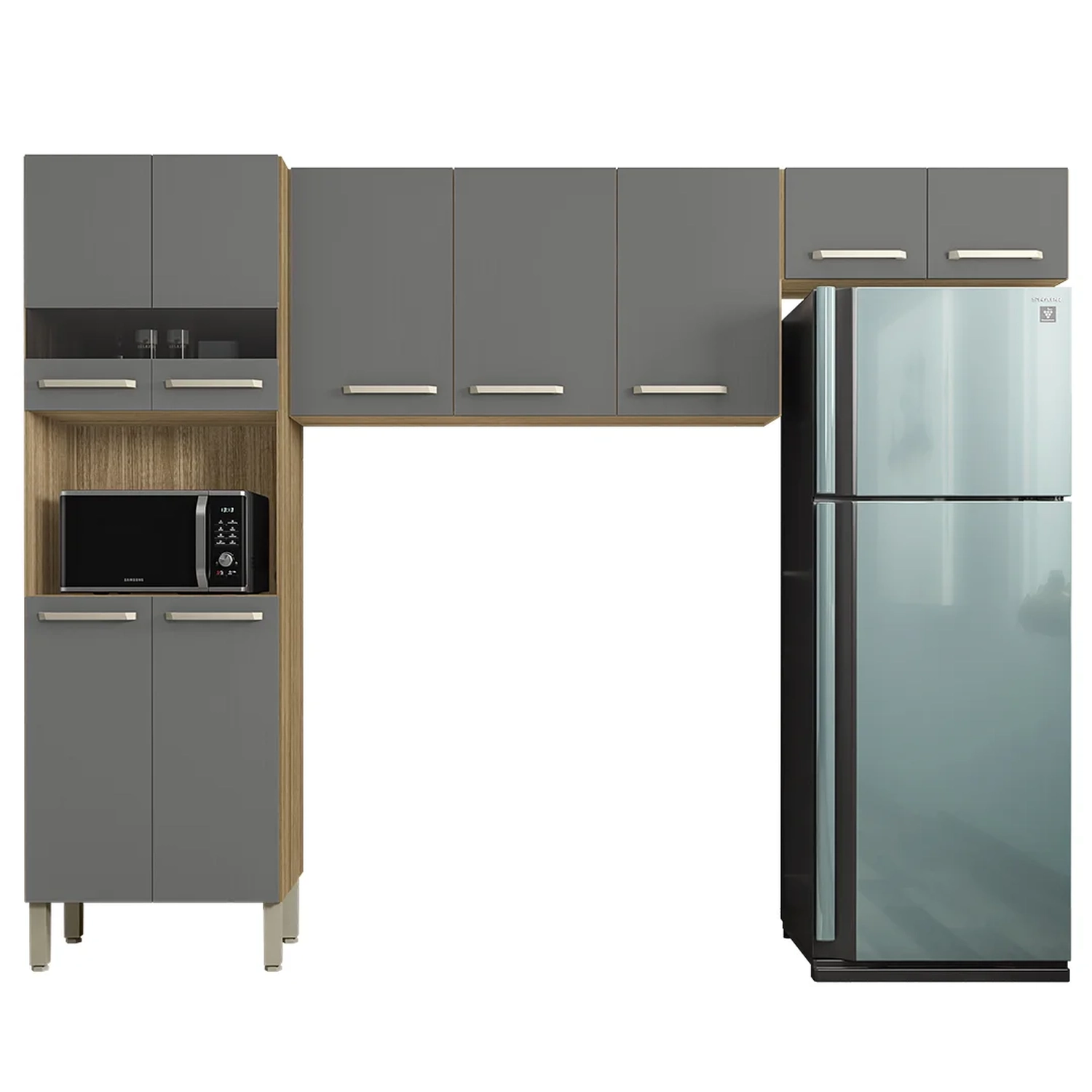 O Armário de Cozinha Compacta 3 Peças 251cm Louis Z06 Freijó/Gris, da Mpozenato, é a solução perfeita para sua cozinha.