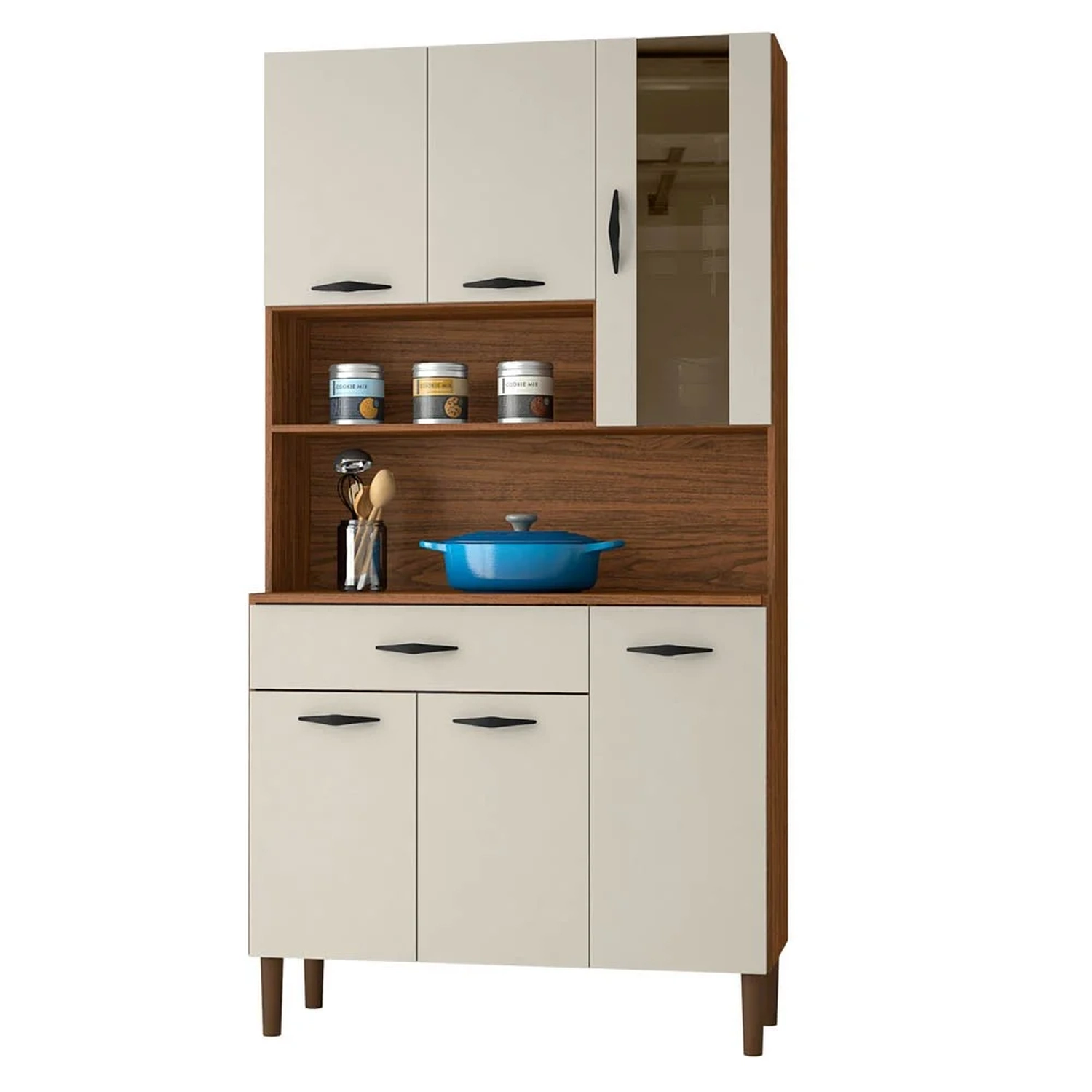 Você está procurando uma Cozinha Compacta que tenha espaço para tudo o que você precisa? Então o Armário de Cozinha Compacta 90cm Bruna Z06 Nogueira/Off White, da Mpozenato, é ideal pra você!