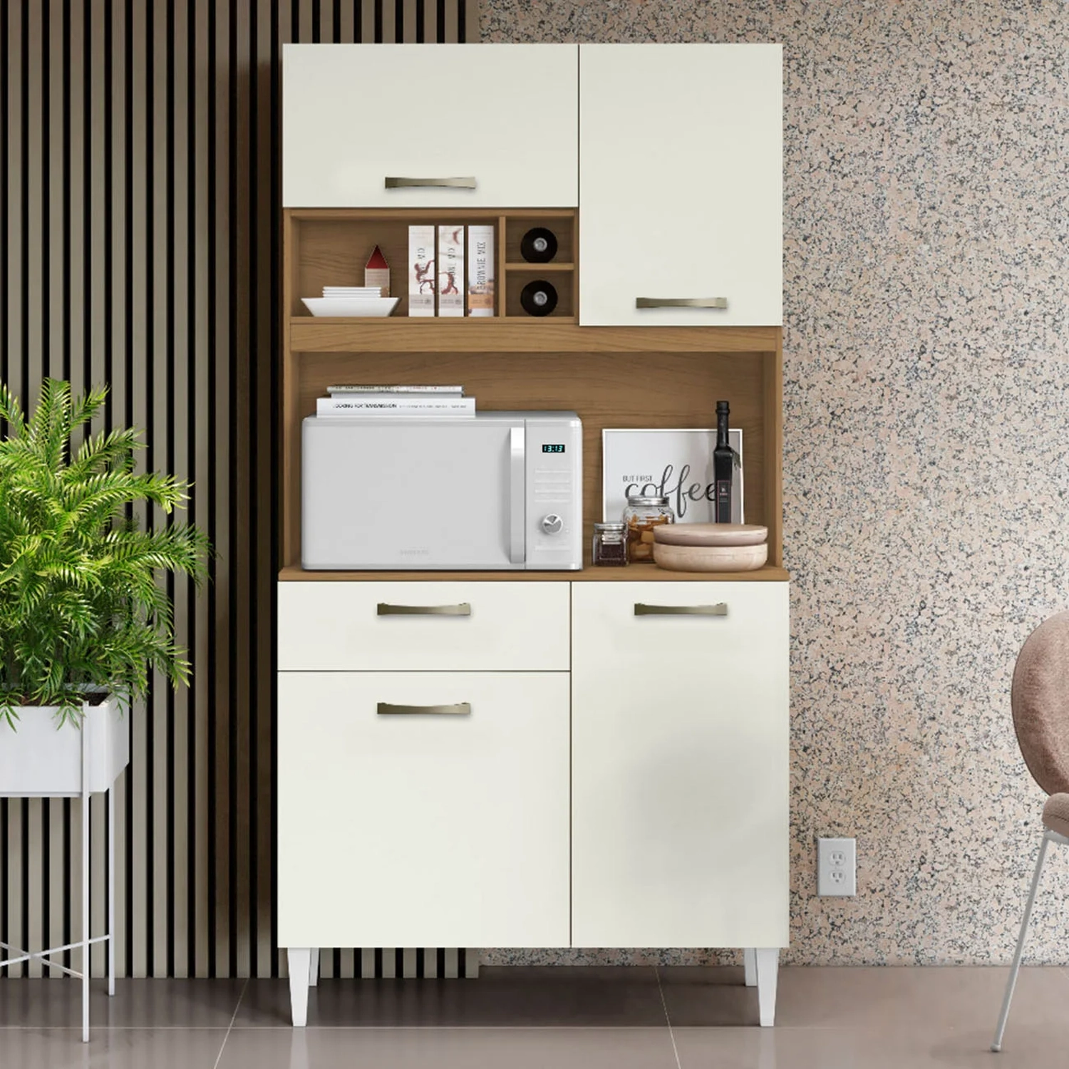 Este Armário Para Cozinha possui estrutura total em MDP, conta com quatro portas que possuem dobradiças metálicas que mantem uma abertura suave e resistente facilitando o acesso aos itens diários.