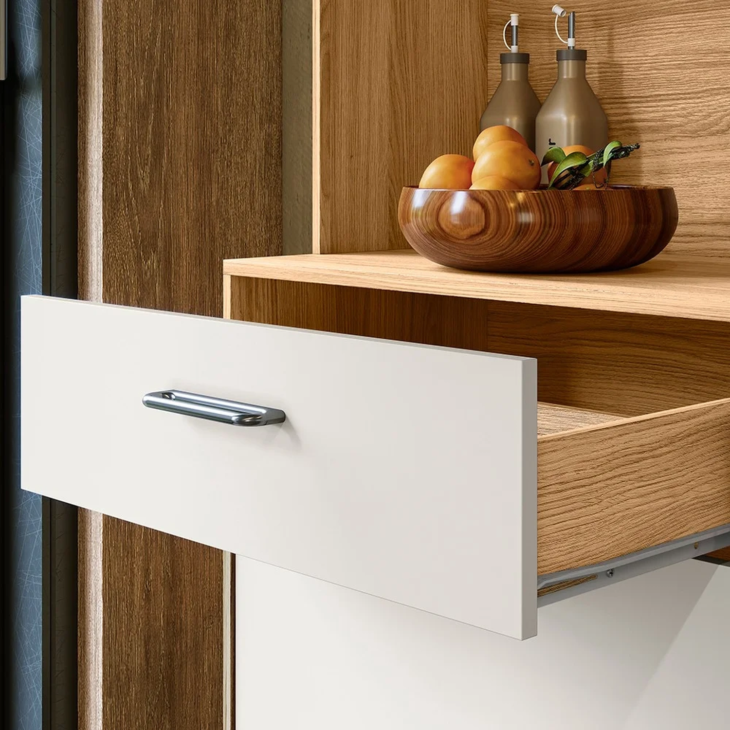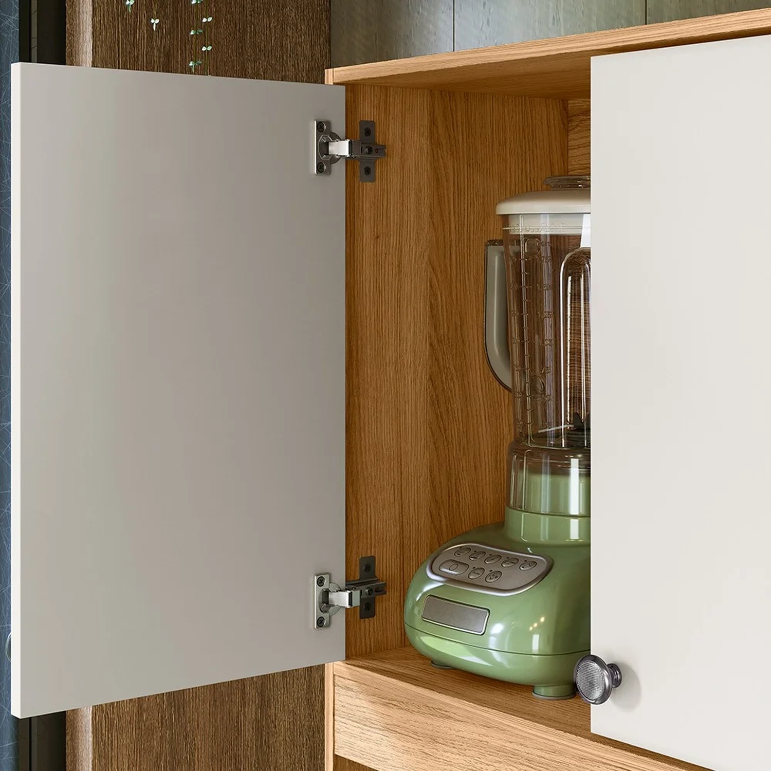 O Armário 4 Portas equipado com dobradiças metálicas resistentes, ele garante uma abertura suave e duradoura. No interior, uma prateleira que permite a organização eficiente dos itens de cozinha. A gaveta, com corrediças metálicas, assegura um deslizar fácil e seguro, ideal para guardar talheres e utensílios variados. Os três nichos são inteligentemente distribuídos, com um nicho grande o suficiente para acomodar eletrodomésticos e utensílios maiores, enquanto os dois nichos menores são perfeitos para condimentos e itens decorativos. Os puxadores em poliestireno adicionam um toque contemporâneo ao design, enquanto a estrutura em MDP de 12mm oferece estabilidade e robustez. O acabamento em pintura UV não só protege o armário, mas também dá um brilho especial, realçando a beleza do conjunto e garantindo que este armário seja um destaque para uma Cozinha Compacta por um longo tempo.