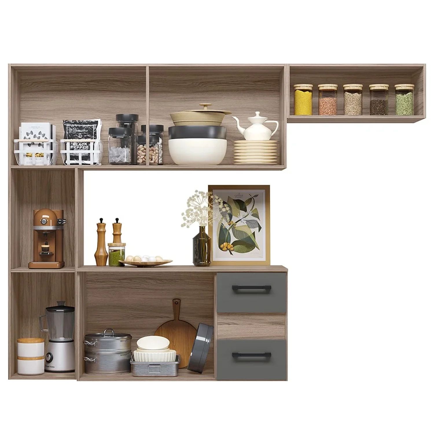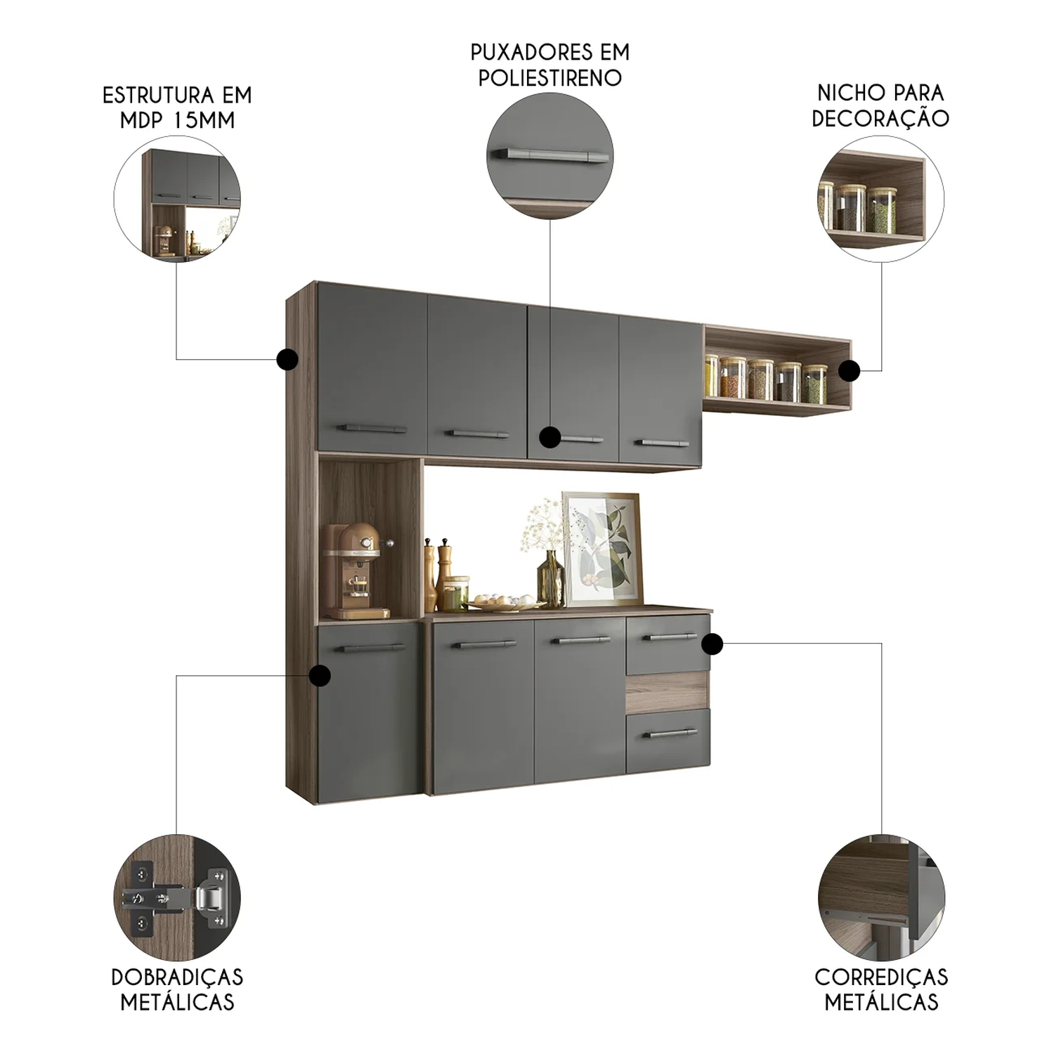 Este Armário de Cozinha Compacta Suspensa Jully N03 Carvalho/Grafite, da Mpozenato é a combinação perfeita de funcionalidade e estilo moderno.