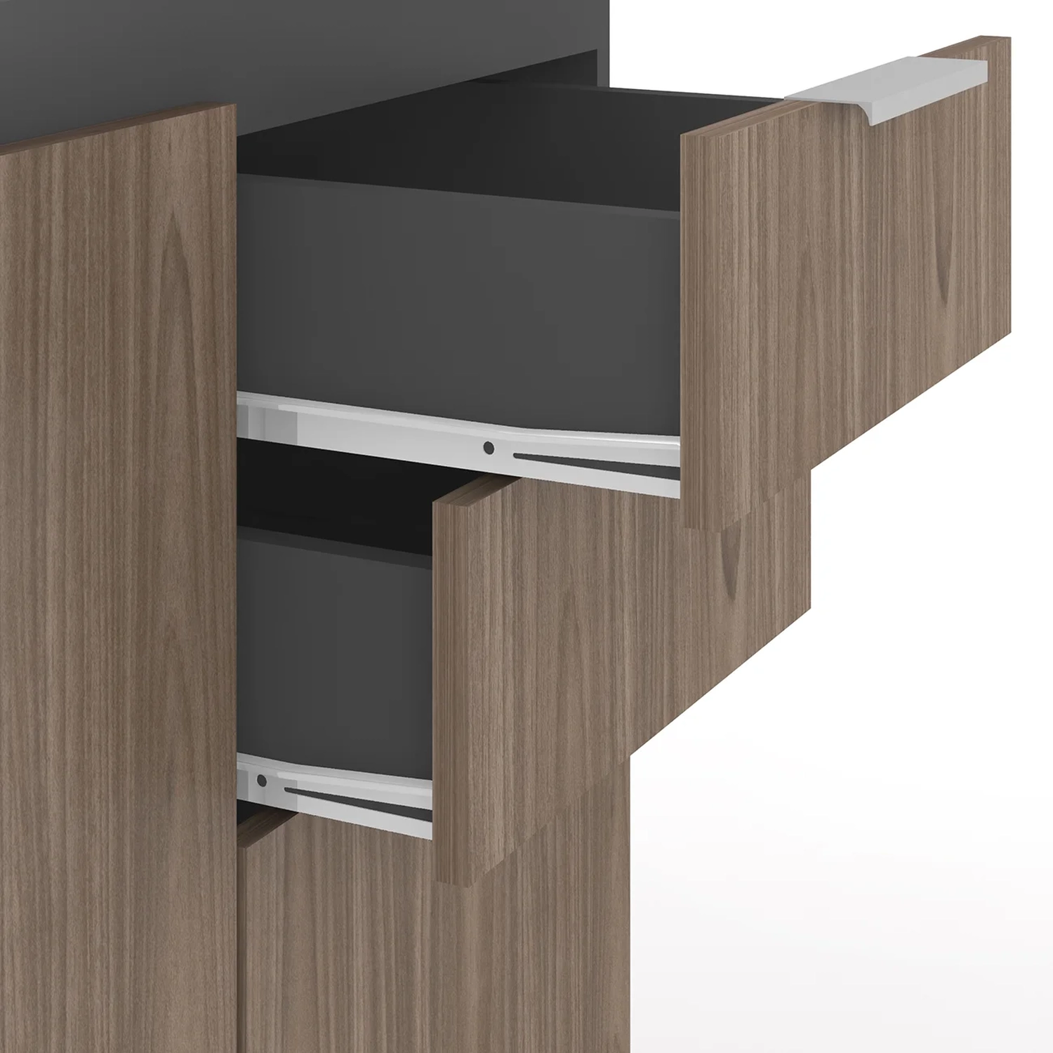 O Armário Aéreo conta com três portas e uma prateleira interna, para auxiliar na organização dos seus utensílios de forma prática e eficiente. Já o Balcão Gabinete dispõe de três portas e duas gavetas, com uma prateleira interna que oferece amplo espaço de armazenamento. Ambos possuem estrutura em MDP 15mm, com acabamento em BP, puxadores em alumínio, dobradiças e corrediças metálicas, que garantem máxima resistência no uso diário. A Pia Inox apresenta um design ideal, que tem excelente desempenho no escoamento da água e possibilita o uso de diferentes objetos sobre ela. Os pés em PVC, são reguláveis, permitindo ajustar pequenos desníveis de piso. Este Armário de Cozinha é a solução perfeita para otimizar sua casa, combinando elegância e materiais de alta qualidade.