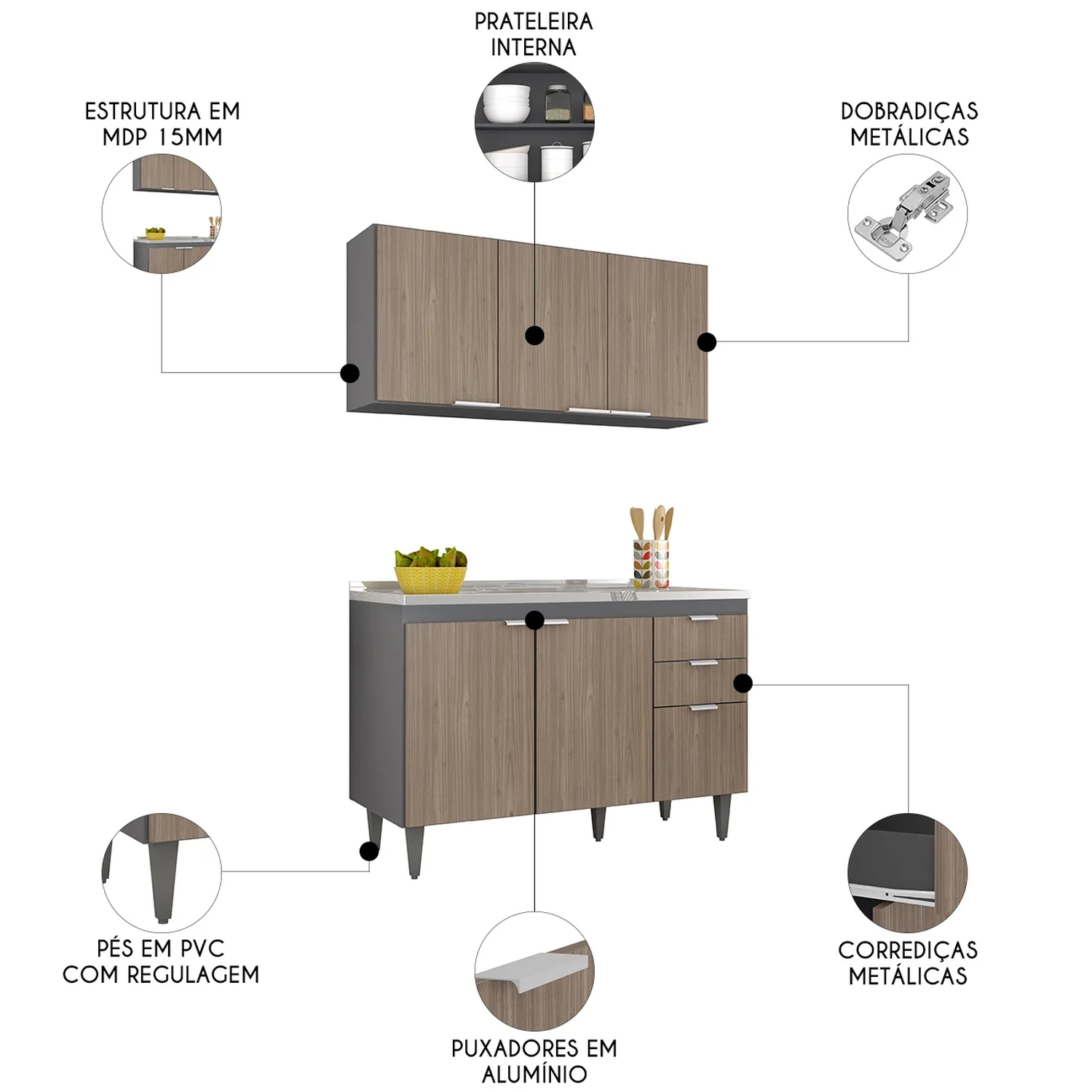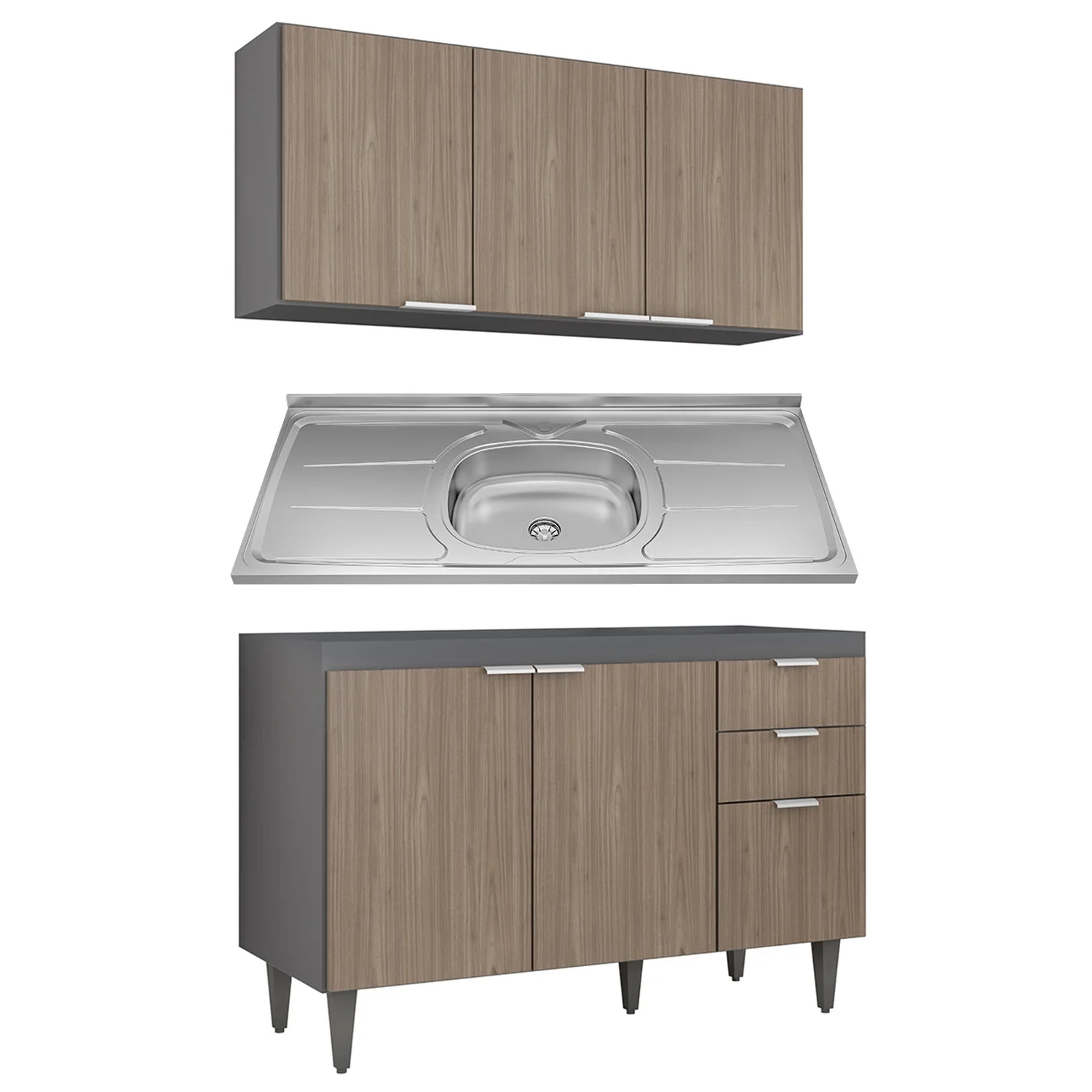 Conteúdo da Embalagem: 1 Armário Aéreo, 1 Balcão, 1 Pia.
