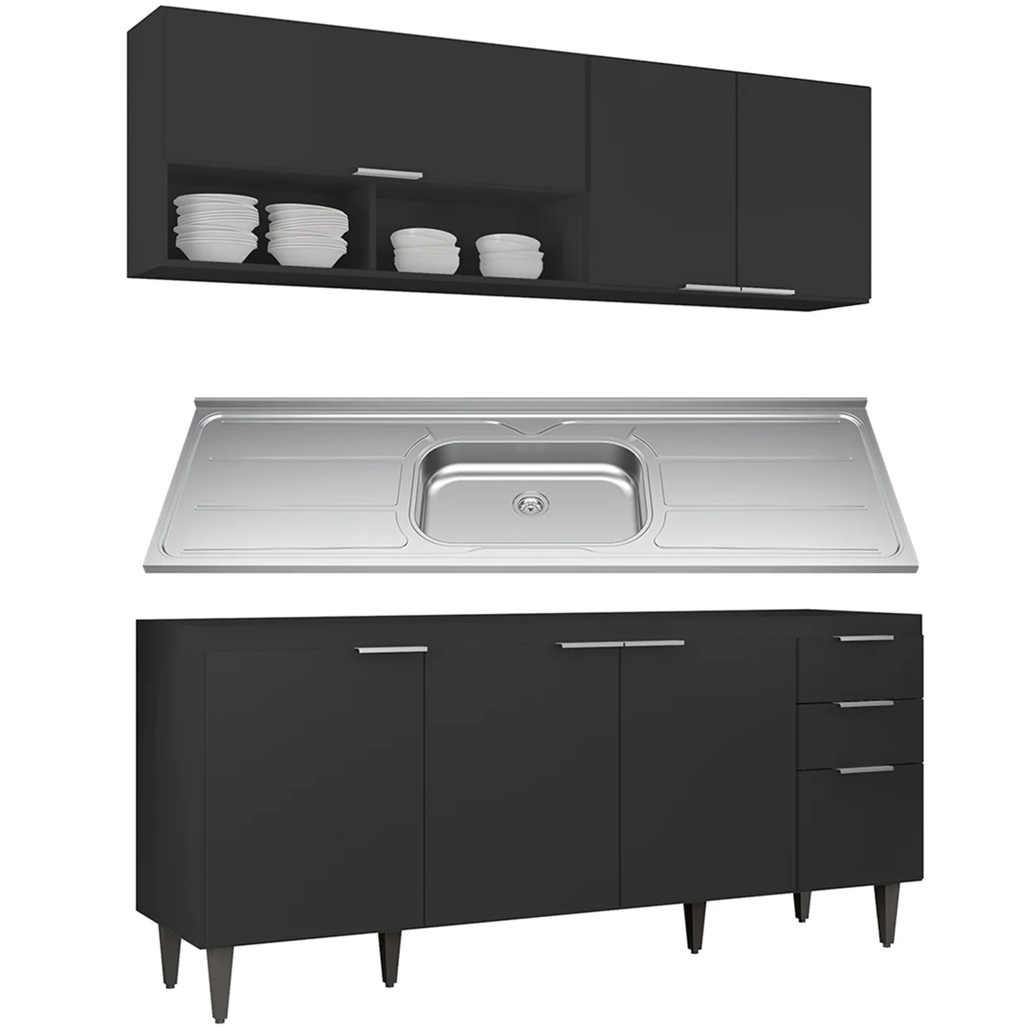 Conteúdo da Embalagem: 1 Armário Aéreo 100cm, 1 Armário Aéreo 80cm, 1 Balcão, 1 Pia.