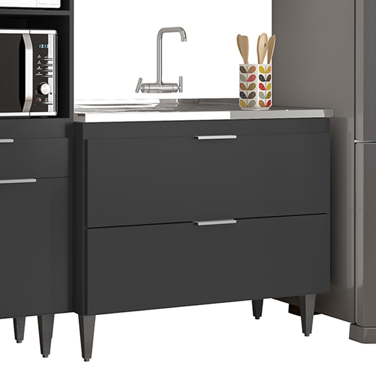 Montar a Cozinha dos seus sonhos nunca foi tão fácil. Com o Armário de Cozinha CP04 Com Pia 100cm Pérola Z34 Preto da Mpozenato, você transforma seu espaço, tornando-o mais moderno e funcional para o seu dia a dia.